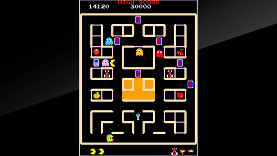 "Pac & Pal" is an action game released in 1983. Turn over cards and eat fruit and special targets to earn score points. Eat special targets to temporarily freeze enemies, and attack them. The new character MIL will pick up fruit and cards, so touch her to get them back.