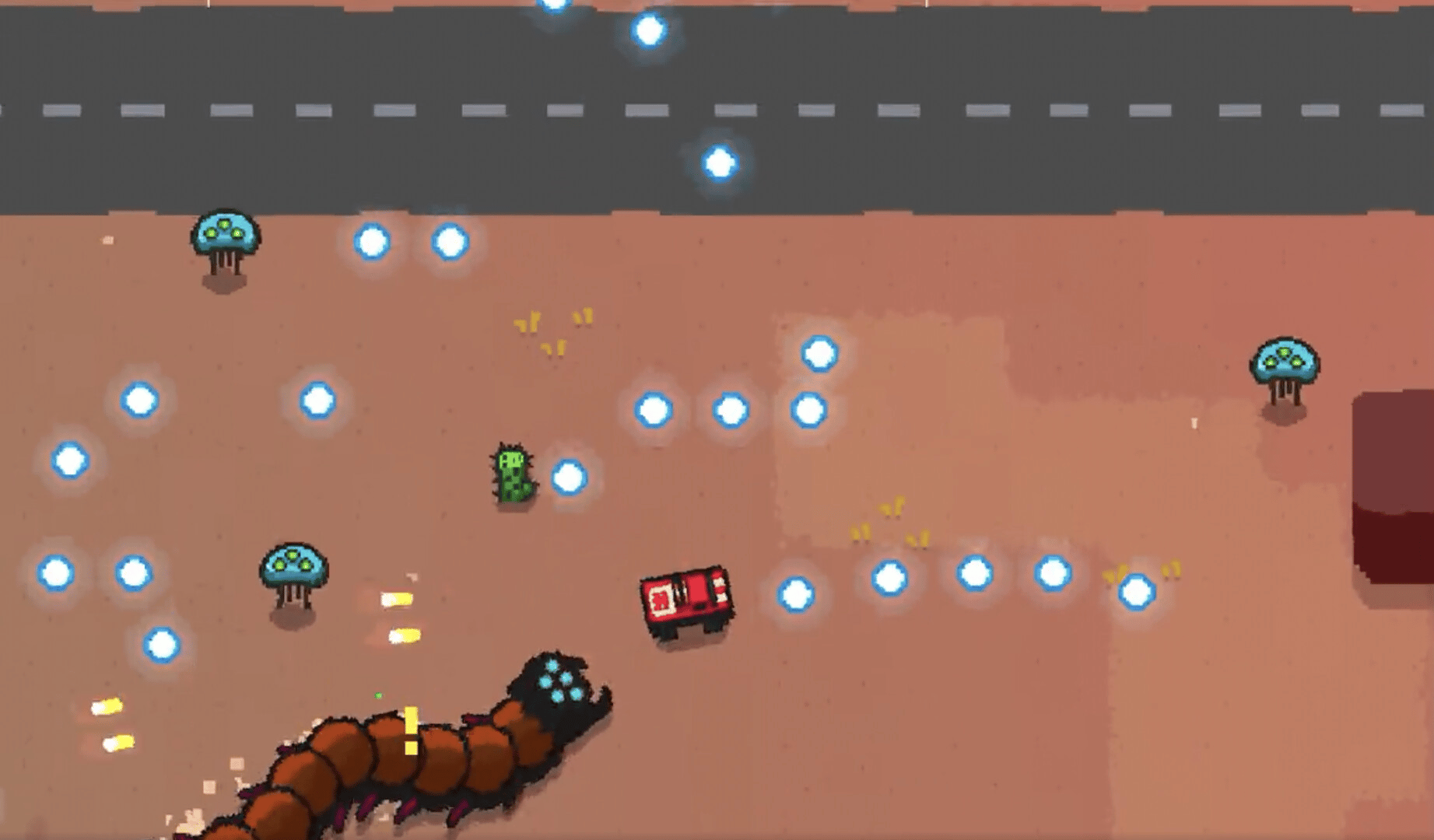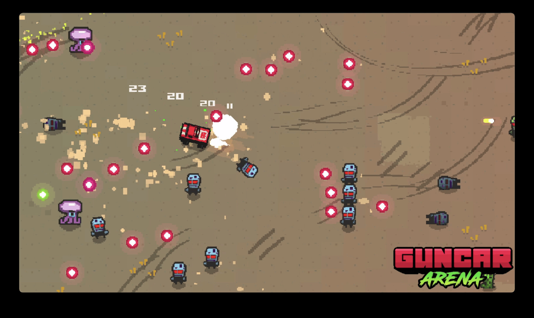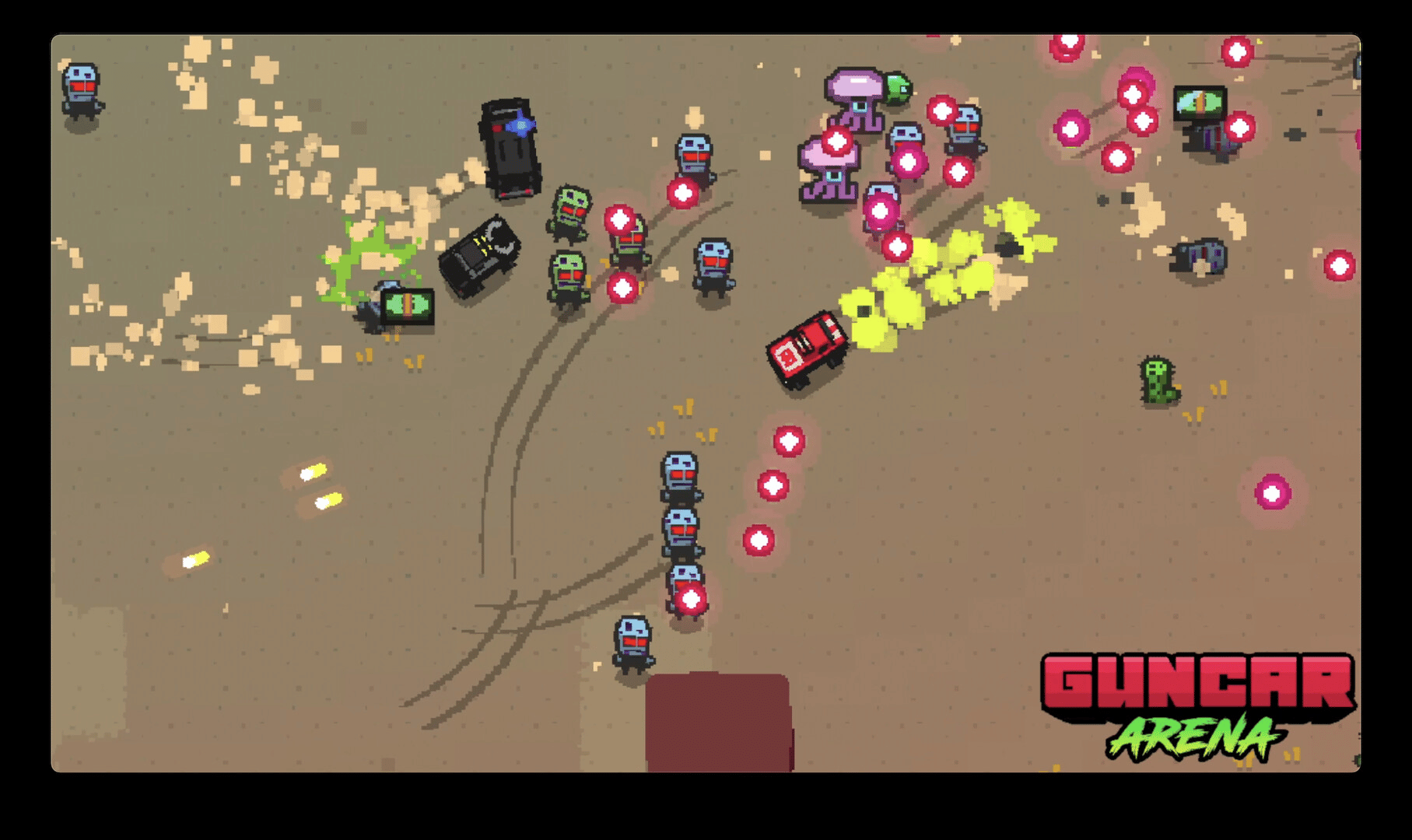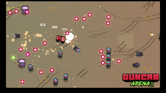 Guncar Arena is an 80s inspired roguelite vehicular combat bullet hell arena shooter. Drive and shoot your muscle car trough alien hordes and tune it with synergizing upgrades to build an absolute engine of destruction!