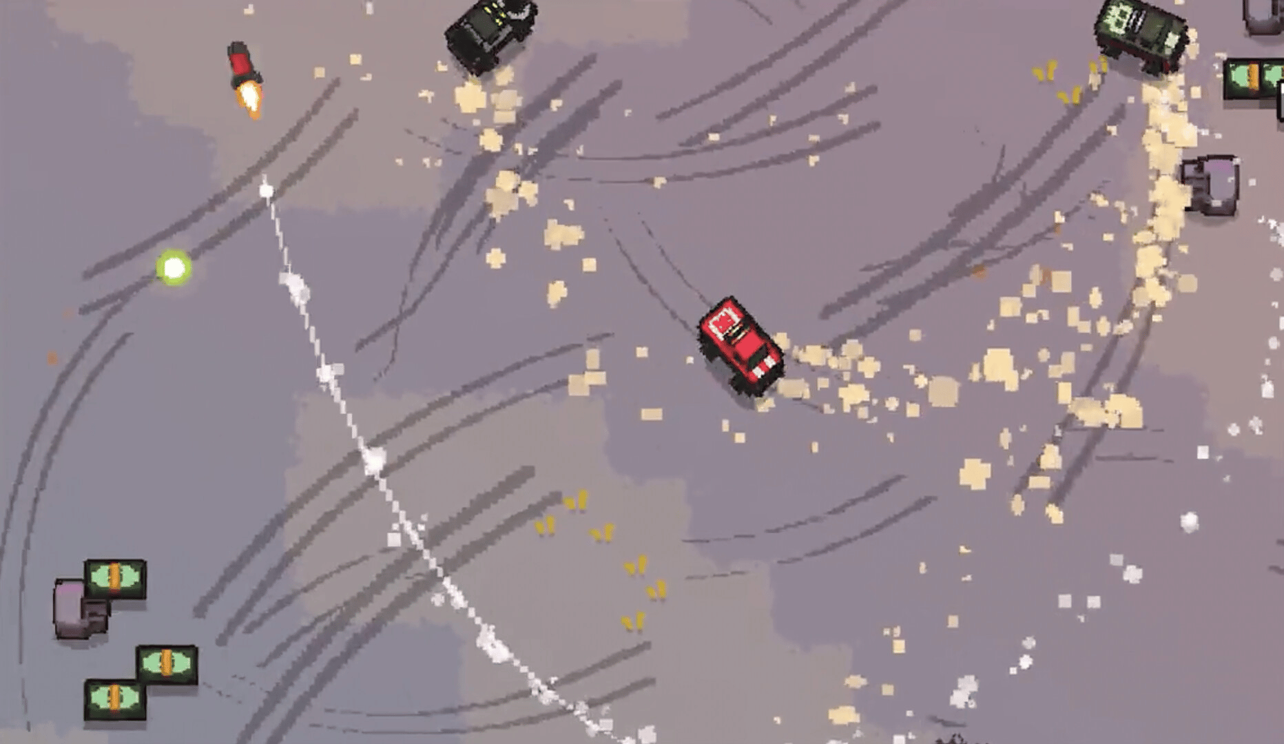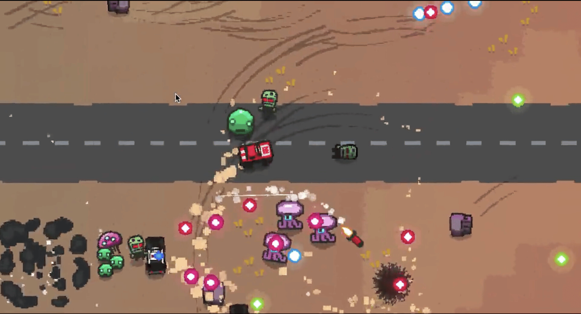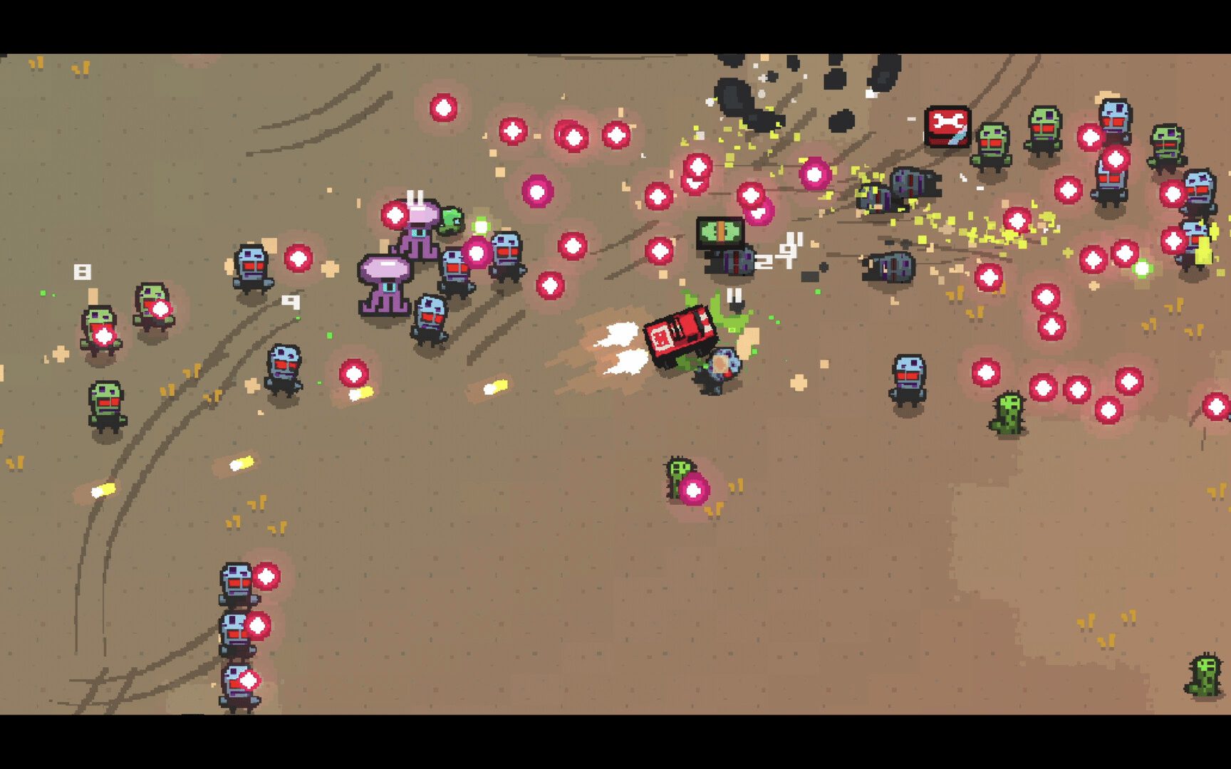 Guncar Arena is an 80s inspired roguelite vehicular combat bullet hell arena shooter. Drive and shoot your muscle car trough alien hordes and tune it with synergizing upgrades to build an absolute engine of destruction!