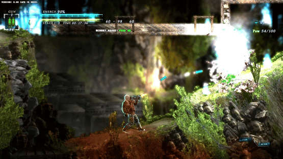 Xearz is a 2D side-scrolling platformer with a retro feel. It features a multi-plane that can be moved to the front and back. The player uses a melee weapon, the blade, a gun that can use guided and reflective rounds, and subweapons such as grenades to defeat enemies. Weapons can be upgraded.