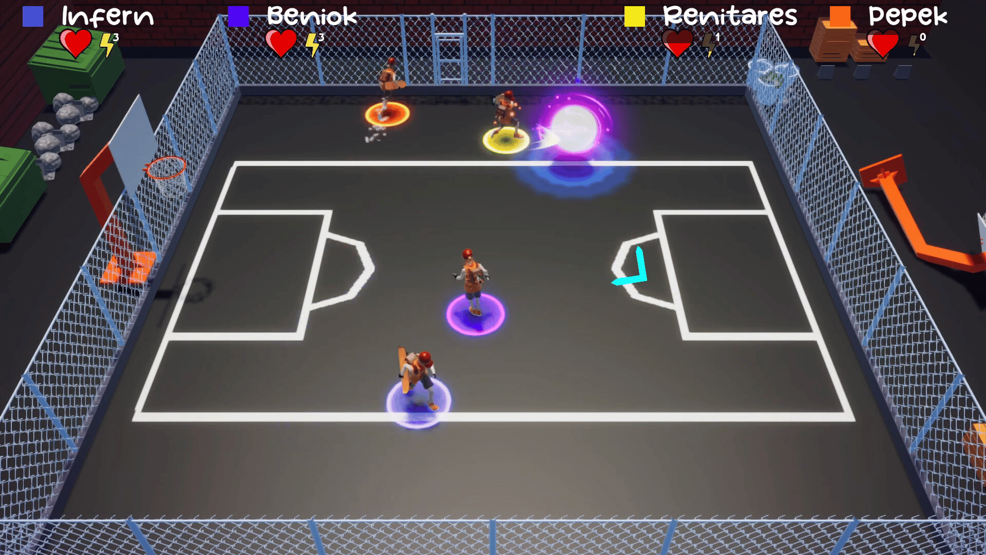 Multiplayer ‘couch game’ that can be played up to 4 players. The primary purpose is to defeat others by hitting a ball so that it collides with the target, inflicting damage in the process.