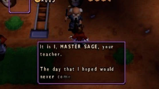 You start the game outside a mine with your friend Tiger. She asks you to take a cart into the mine. You oblige and while in the mine there is an explosion which causes you fall to the lower levels. In the mine you find a treasure chest with a bamboo staff in, which becomes your weapon for the rest of the game. After much wandering you find your way out and meet Master Sage, who gives you a headband which he can use to communicate with you. He then sends you to the library to stop the Nightmare King from stealing the Magic Storybook.