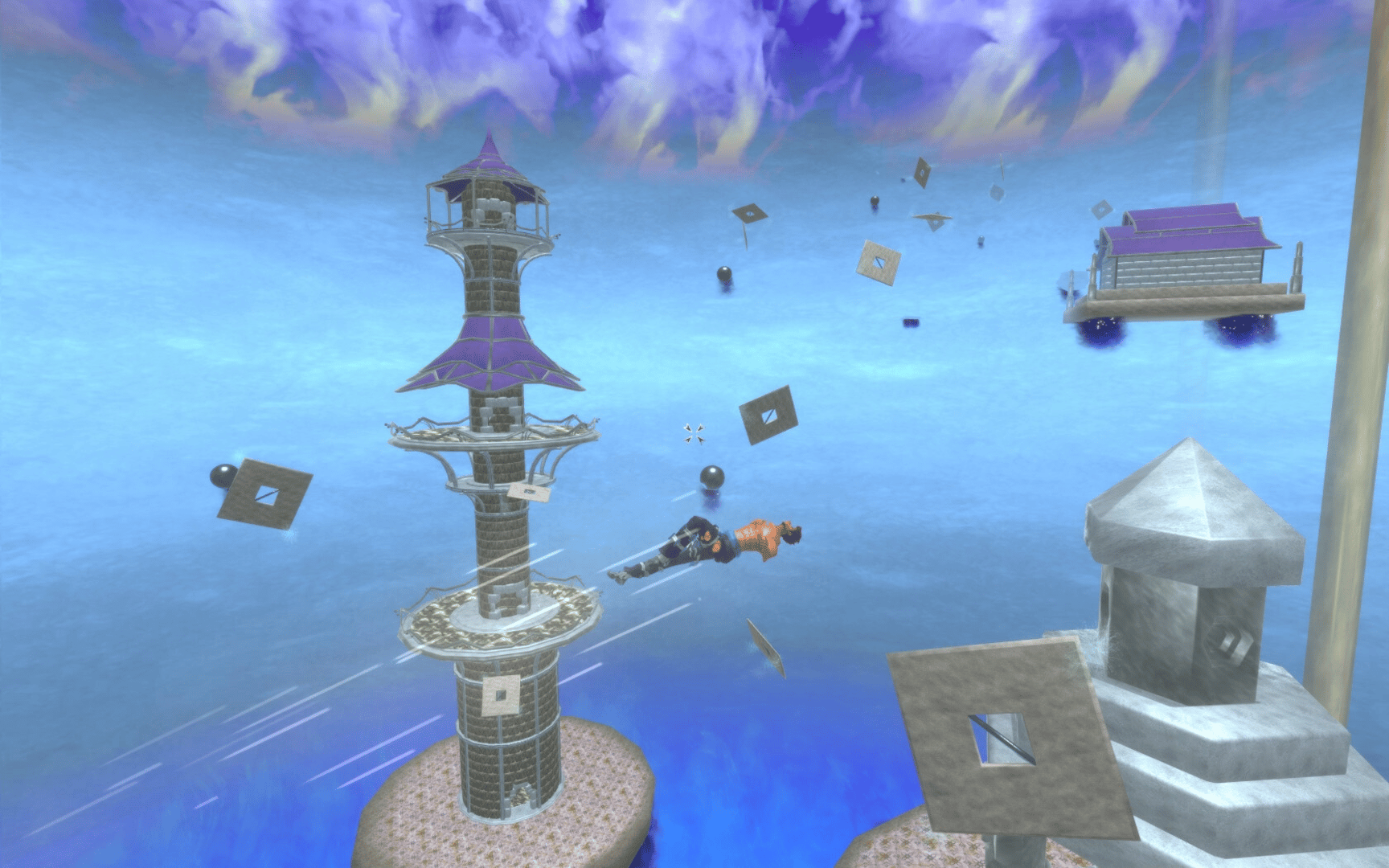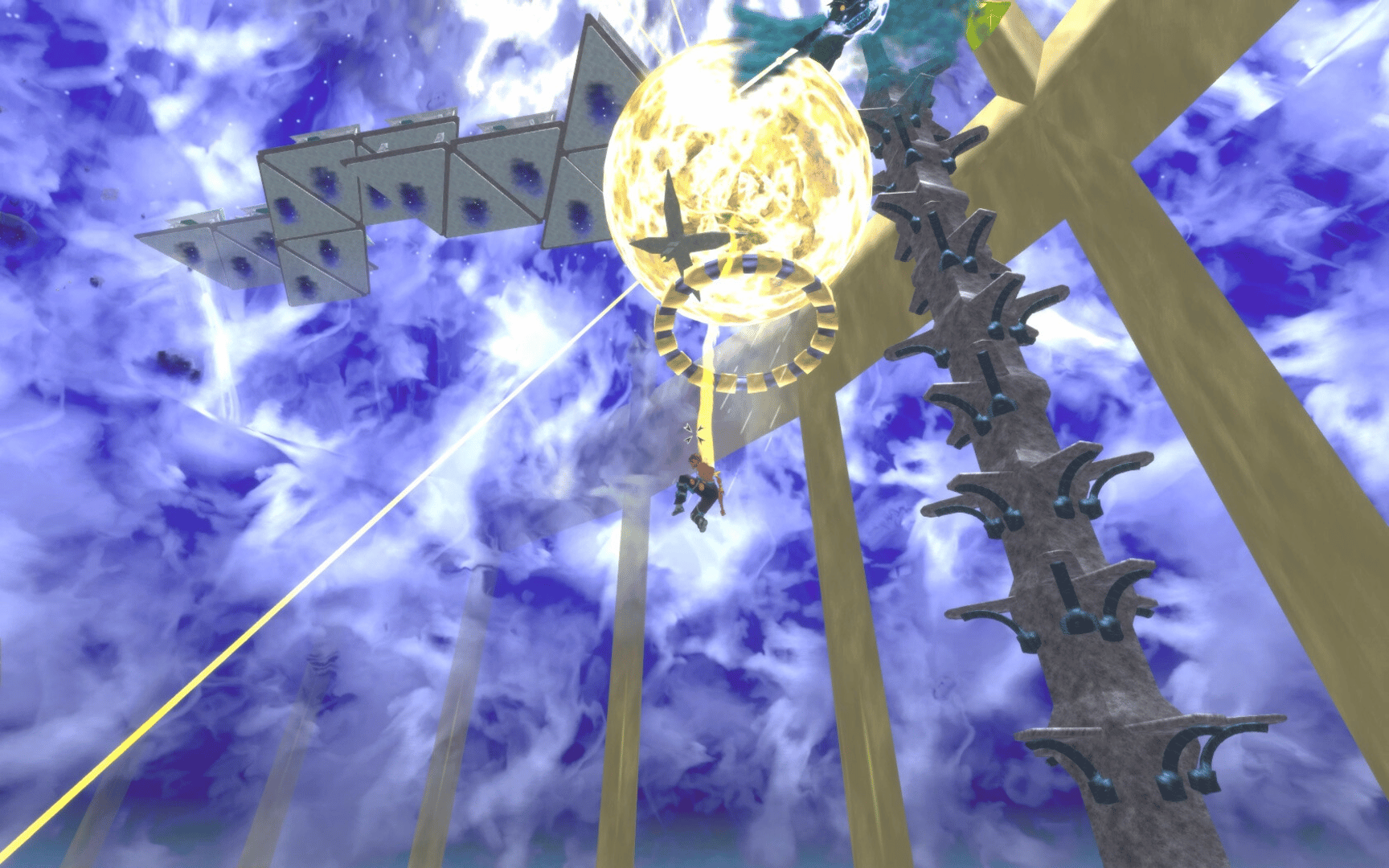 Your main ability is to place two crystals on a viable surface and pull towards them. You can use dashing, jumping, running, and perform a special jump which is available after collecting rewards. Your opposition will be two types of sentries, dragons, mines, and traps who all want to keep you down.