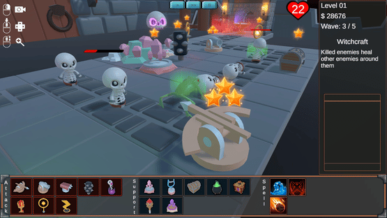 A 3D tower defense where not only the towers matters but also the ground that alters the towers. Spiced up with randomized wave modifications, skilltree, unique towers and spells. Voila! You get Tiles and Towers TD!