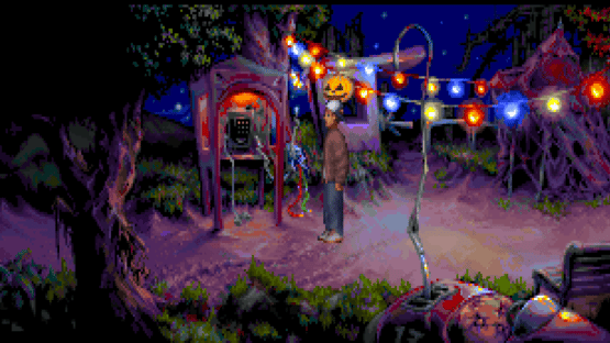 One rather typical Halloween eve, Benjamin is witnessing his uncle's attempt to activate the Worm Hole Spawner, his latest invention. The experiment works, and a hole in the sky rips open. Meanwhile in a galaxy far, far away, an entity, chased by a spaceship, accidentally dive into the worm hole which suddenly appears before them. The spaceship hits the brakes and starts to orbit around earth. The commander of the spaceship, Boss, orders a group of aliens to land on earth and bring back the one that's responsible for getting them where they are. The alien shuttle lands next to the mansion and four white little aliens emerge from inside. They enter the mansion and grab Benjamin's uncle, while Ben himself is hiding behind the Worm Hole Spawner. Unnoticed, Benjamin is left behind with a task to solve the alien mystery and rescue his uncle... and possibly the galaxy as well.