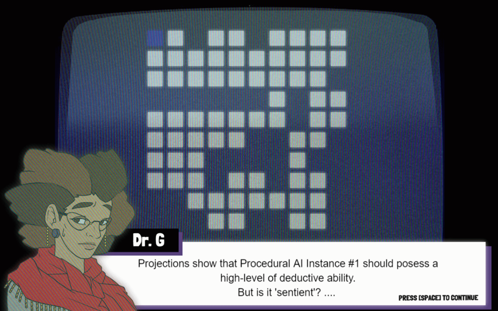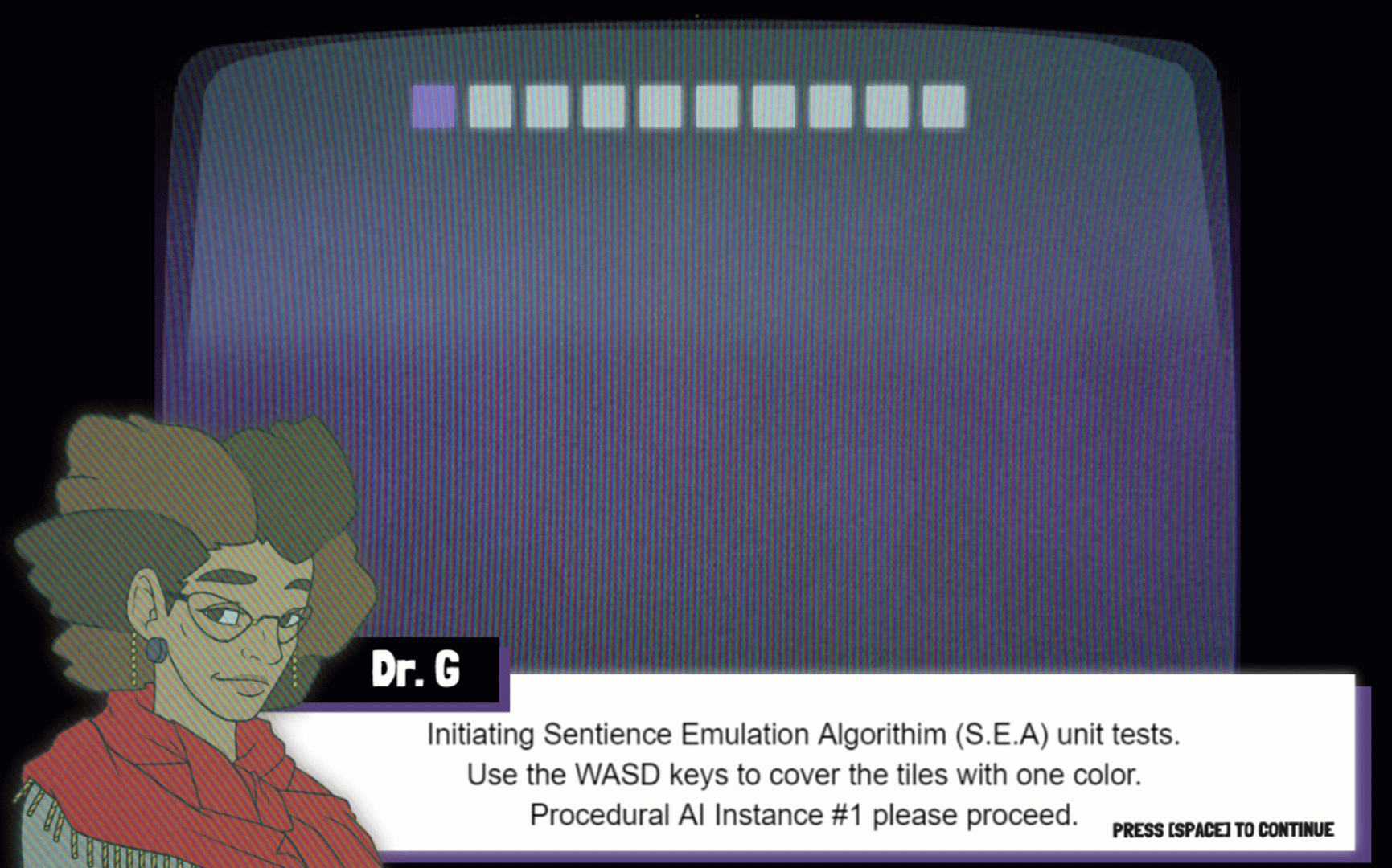 Explore the line between machine and personhood, in this Puzzle Narrative experience. Take on the role of an AI, created by the world renowned, Dr. G. Step through a battery of cognition tests and prove your intelligence, sentience and ultimately your humanity.