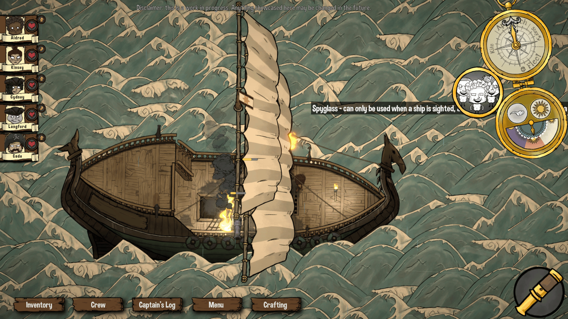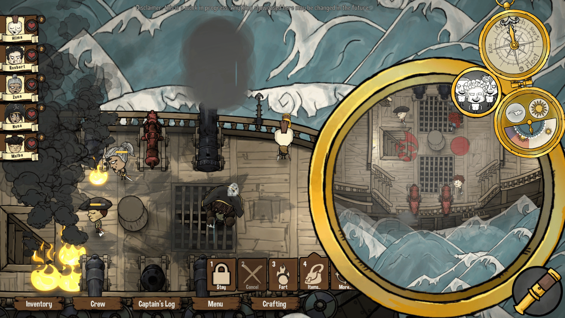 Cursed crew is a roguelike crew management game taking place on a 18th century ship in a fantasy setting. You control a captain that needs to keep the ship’s crew alive in a harsh world with environmental hazards, pirates, sea monsters and much, much more. Can you lift off the Curse?