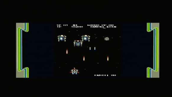 The Next Space is a vertically scrolling Shoot 'em Up released in 1989 by SNK for Arcades. The game is a typical scrolling shooter, with two buttons used for the primary shot and secondary shot respectively. Red capsules will leave "S" icons which will raise the ship's speed. Along the way the player will also find blue capsules which will release power-ups which equip different secondary shots into the ship. There are nine different secondary shots available, each represented by a different letter. By shooting the power-up icons the player will cycle between the letters, allowing to equip the desired weapon. Weapons don't stack, so picking up more icons of the same letter won't raise the player's firepower.