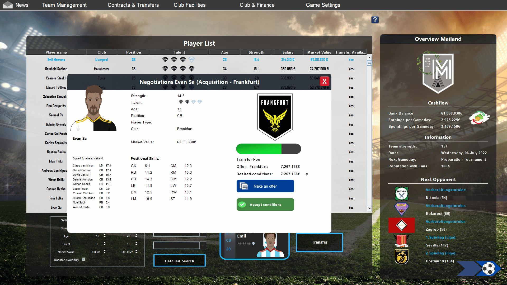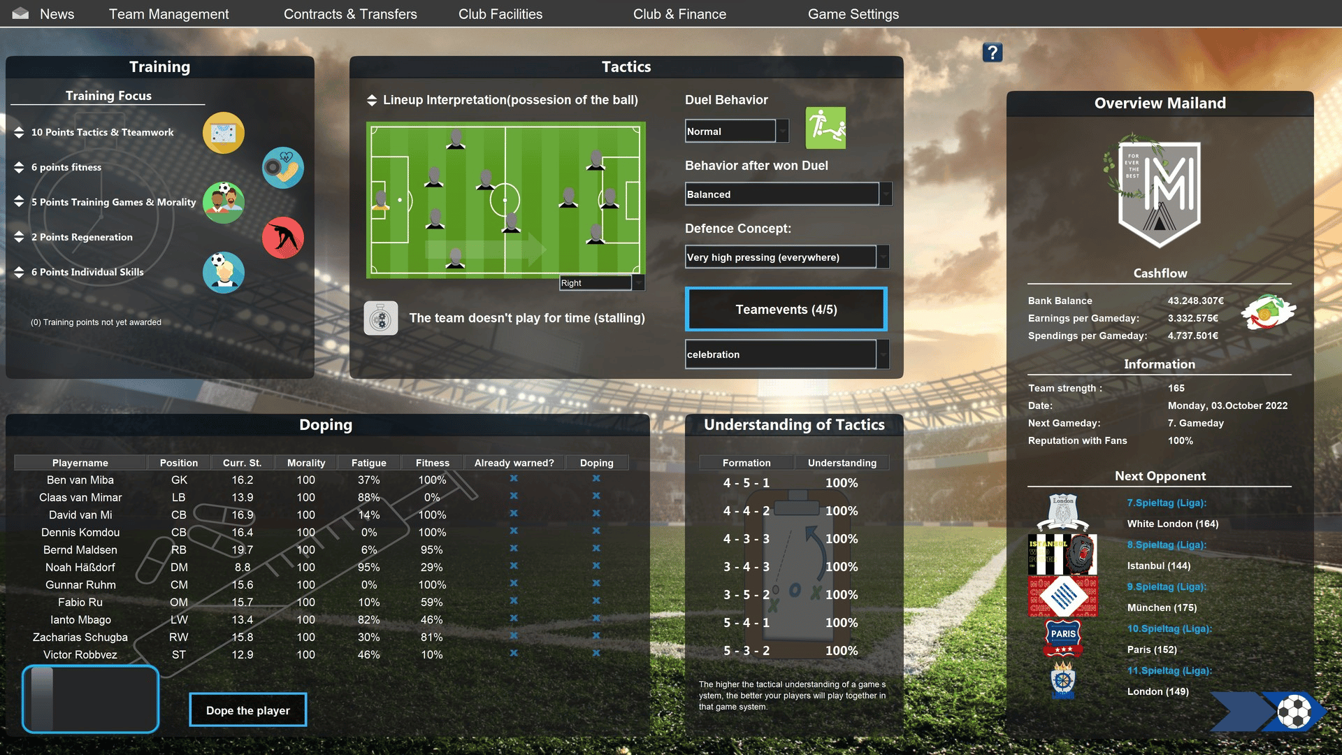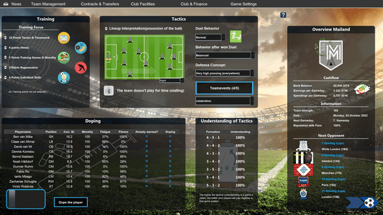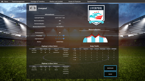 In European Football Dynasty, the best clubs from all over Europe are combined in one league-structure. You take over the job as the top manager of a soccer club. Will you manage to lead your club to success - even if your competitors for the title come from Madrid, London, Milan and Munich?