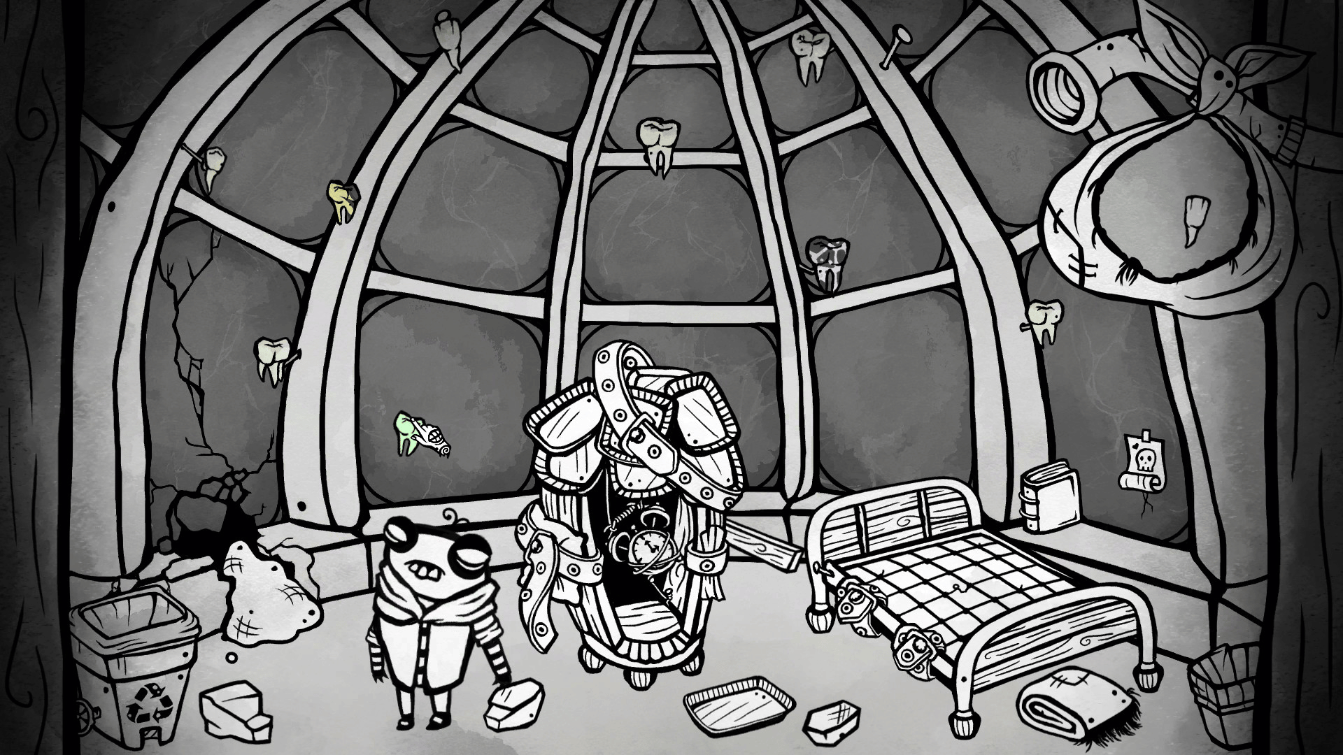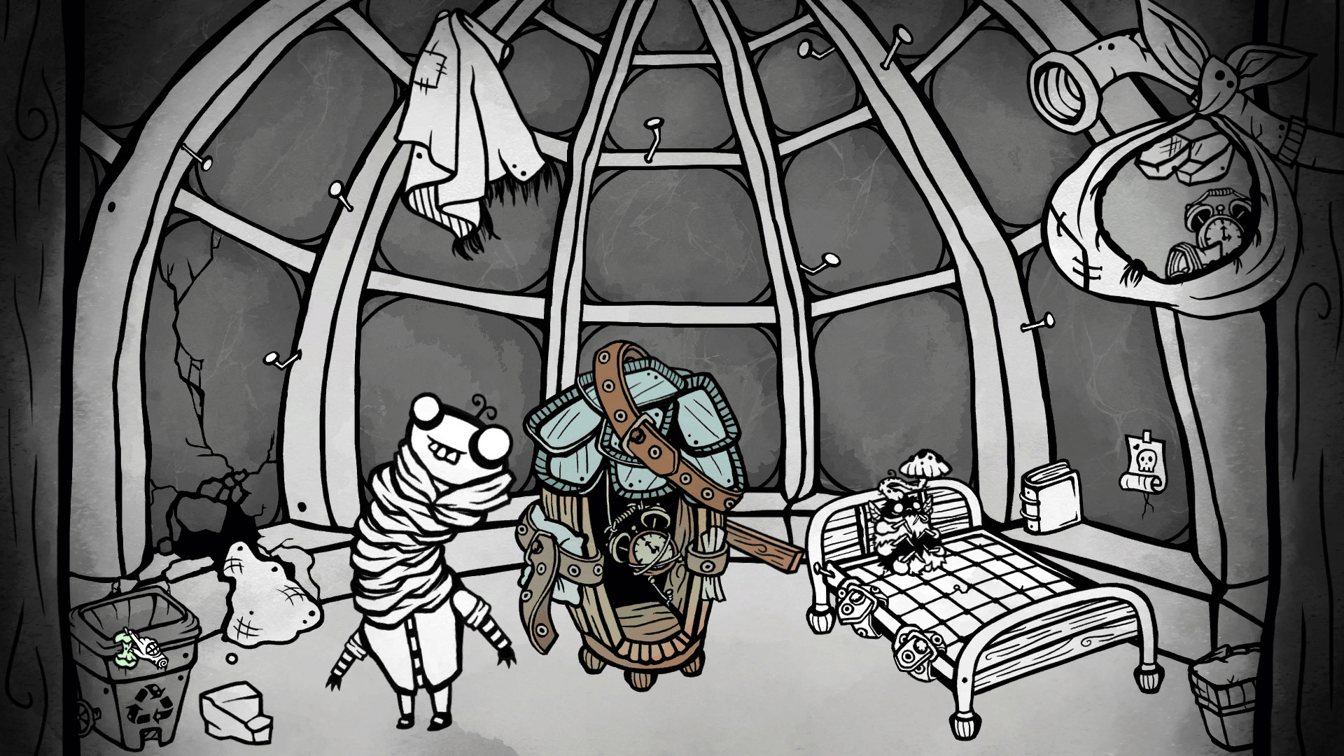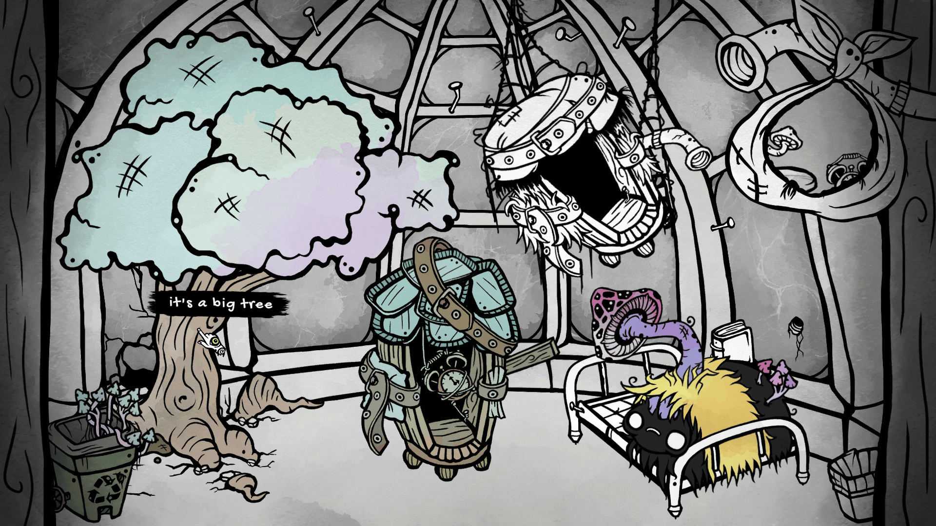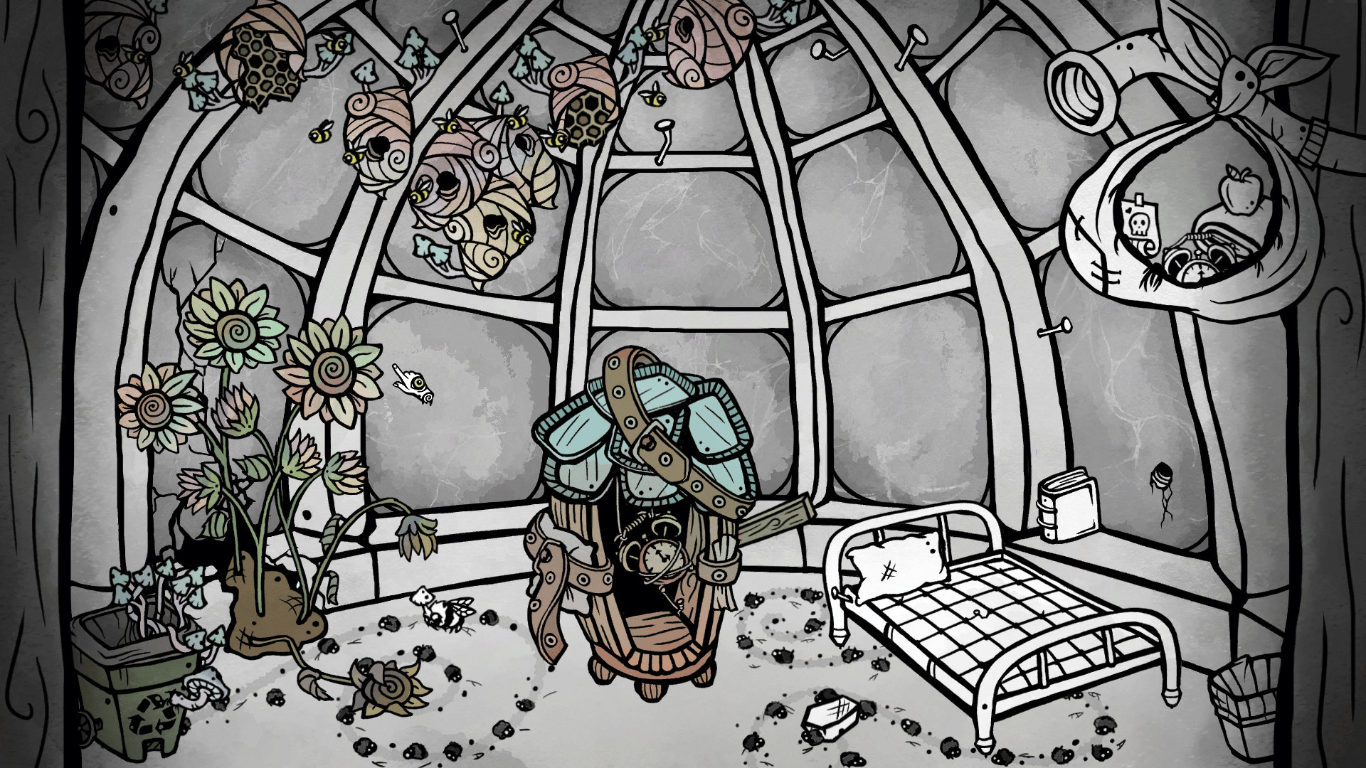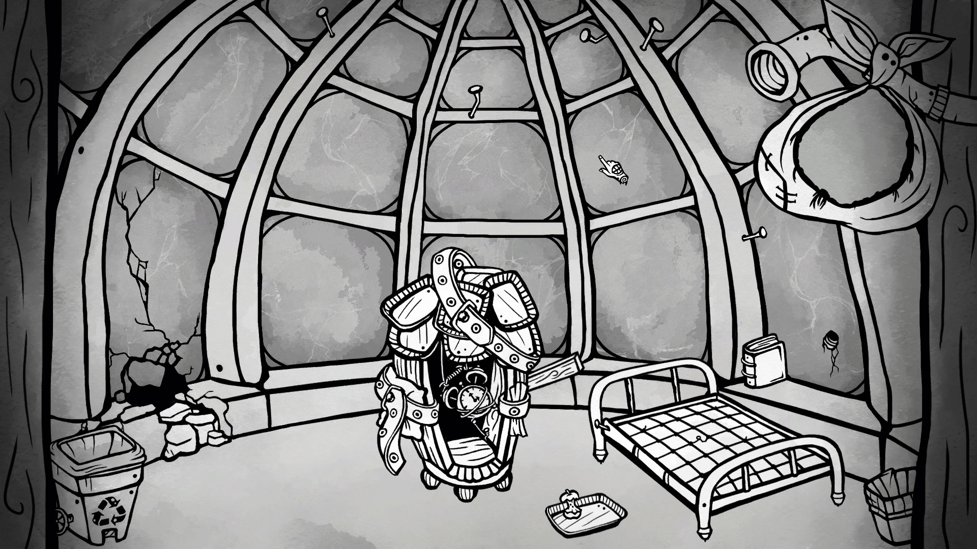 A point-and-click adventure game taking place within a single room. Equipped with some trash and a makeshift time machine, and aided by a neurotic version of yourself from 5 years ago, you must traverse time, collect objects, solve puzzles, befriend a large zombie bee, and escape the madness.