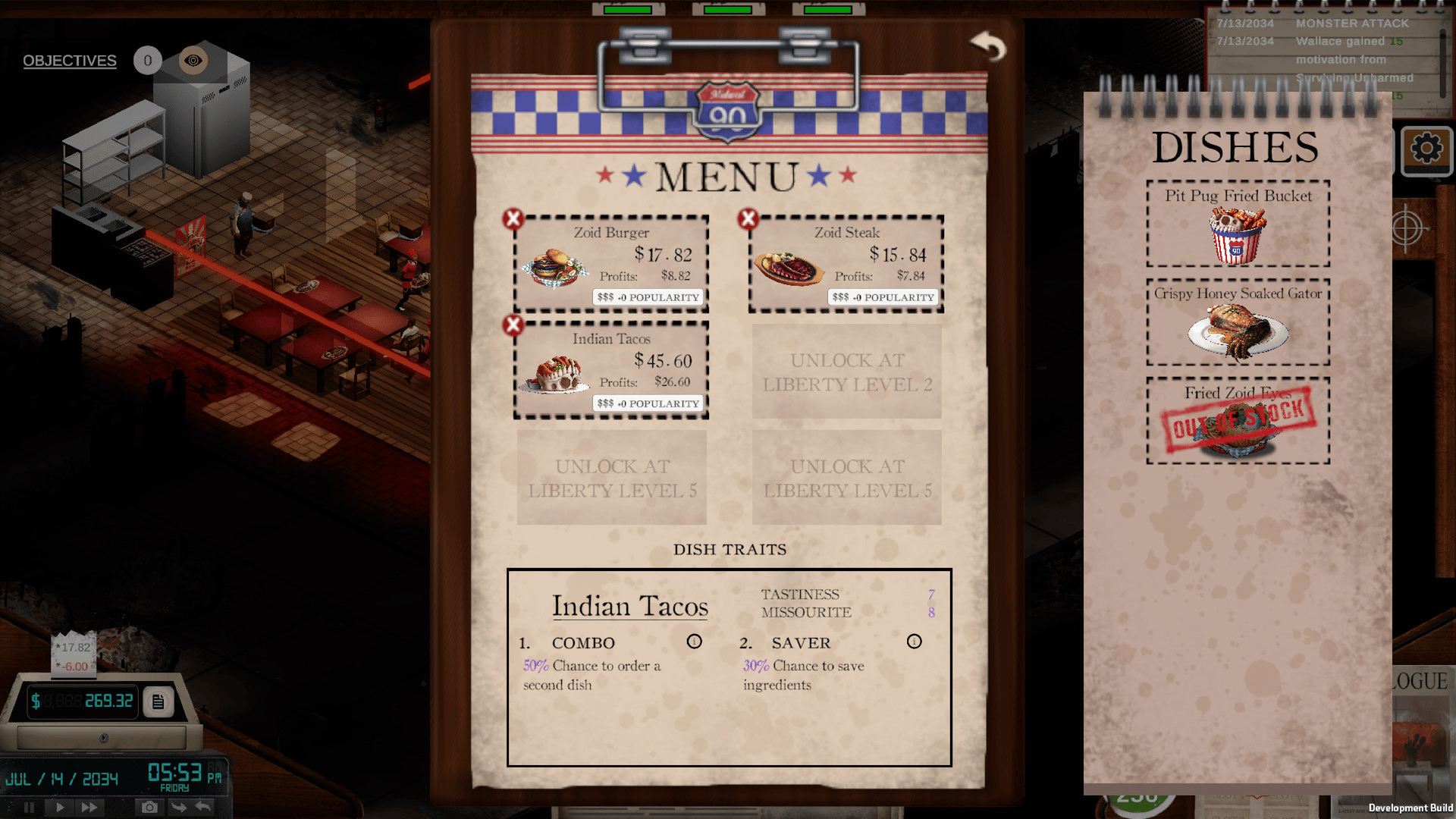 Midwest 90: Rapid City is a single player, narrative focused survival- tycoon PC game, where the player Builds and Protects their restaurant that serves Monster Meat Dishes.