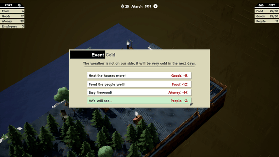 Portobugia is a management/survival game where you manage a port and you must supply a city with goods and food. To do so you must unload boats, but, be careful, some of them could be infected!