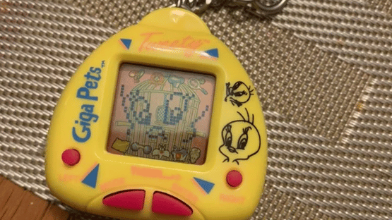 Giga Pets are digital pet toys. Available in a variety of different characters, each Giga Pet is a palm-sized unit with an LCD screen and attached key ring. To ensure a happy, healthy pet, its owner has to take care of it similar to how one might care for a real animal, including feeding, cleaning, and playing with their Giga Pet.