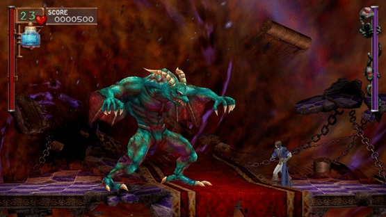 Castlevania: The Dracula X Chronicles is an entirely new take at the best Castlevania game to never be released in the US, "Castlevania: Rondo of Blood". The Dracula X Chronicles brings this action/adventure franchise to the PSP system for the first time, complete with 3D graphics, enhanced gameplay and new music. Completing the Dracula X storyline, this game also includes an unlockable version of Symphony of the Night and players will also be able to unlock the original Rondo of Blood from the NEC PC Engine. Includes unlockable versions of the original "Rondo of Blood" and "Symphony of the Night" games, optimized for the PSP. Timeless side scrolling action through more than 10 gothic stages and additional hidden areas. Return to previously completed levels to find additional secrets.