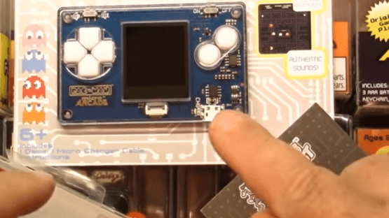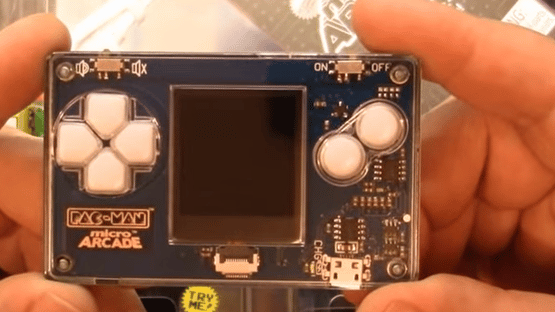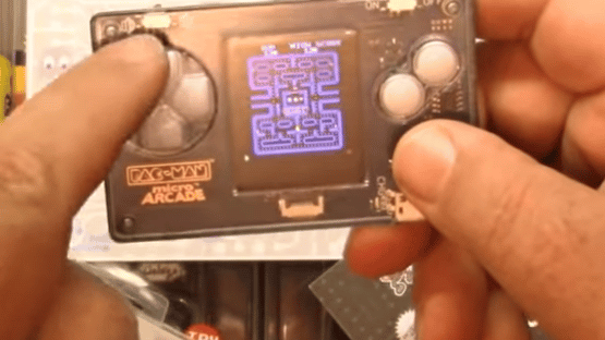 A full-size Pac-Man arcade game in a credit card size. The game comes with a full color screen, sound effects, and directional control buttons, with a micro USB charger included.