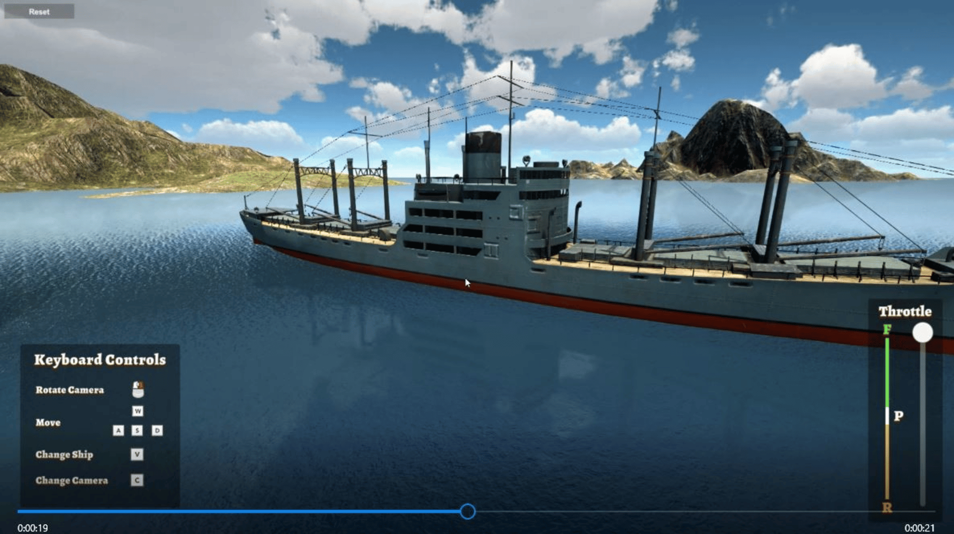 Sea Scenes is a boat and ship driving game. There are no gameplay objectives or missions, just WASD-based boat driving in 3 different levels and 7 different ships.