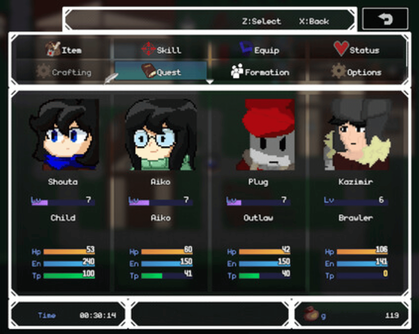 World Zero is a simple easy to pick up turn based rpg with not too many gimmicks. Traverse the world and meet a diverse cast of characters who some may even join your party. Different party members can change up on the dialogue.