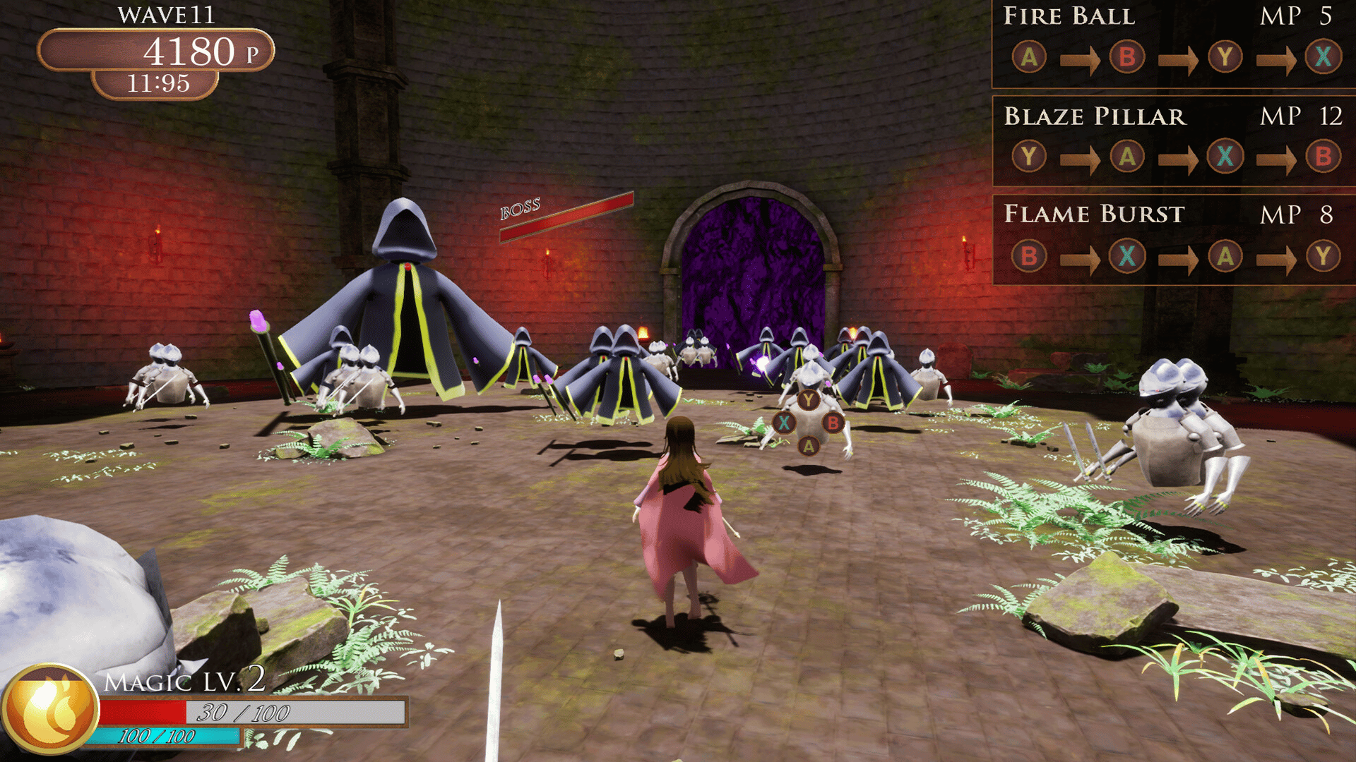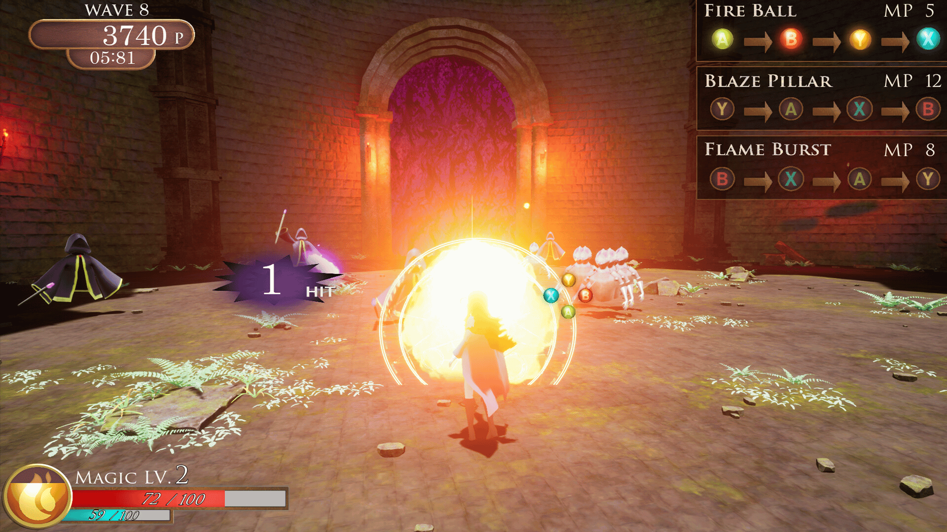 Magic attack by command input, requires precise operation and instantaneous power. The "Score Attack Battle" is all about eliminating large numbers of enemies and surviving longer. How can you conquer "Ignite"? A magical experience like no other!