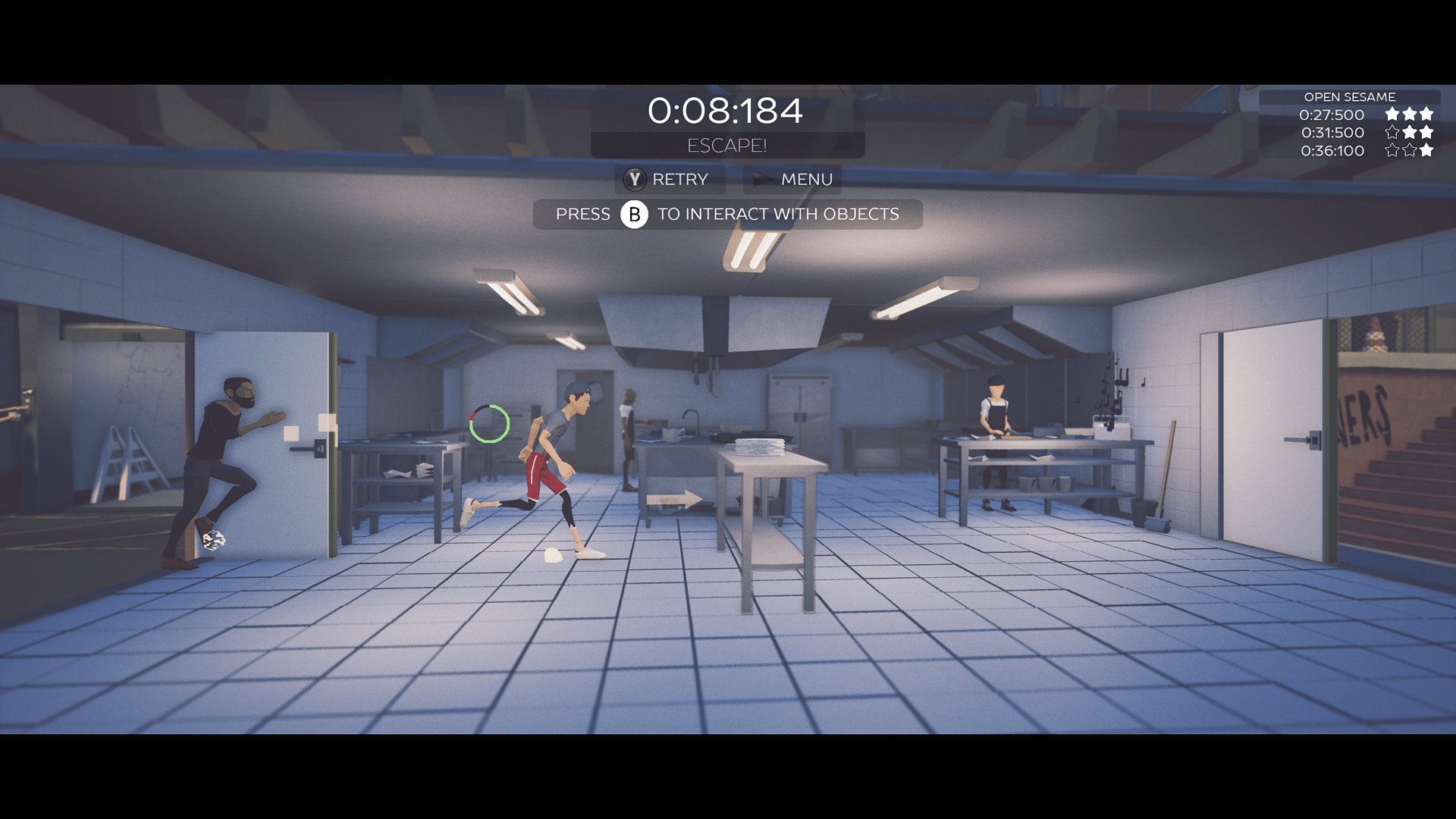 Become a freerunner. Find a flow and underlying rhythm of movement through your environment. Vault, climb, jump, duck, swing, flip, slide, do what it takes to travel as fast as possible whilst using your environment to outwit the enemy henchmen and save your friend.