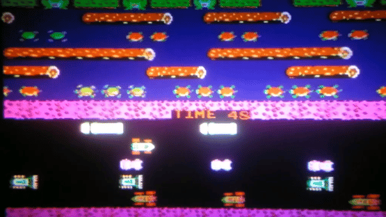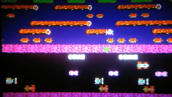 Your task in this arcade game is to guide a frog across a treacherous road and river, and to safety at the top of the screen. Both these sections are fraught with a variety of hazards, each of which will kill the frog and cost you a life if contact is made.