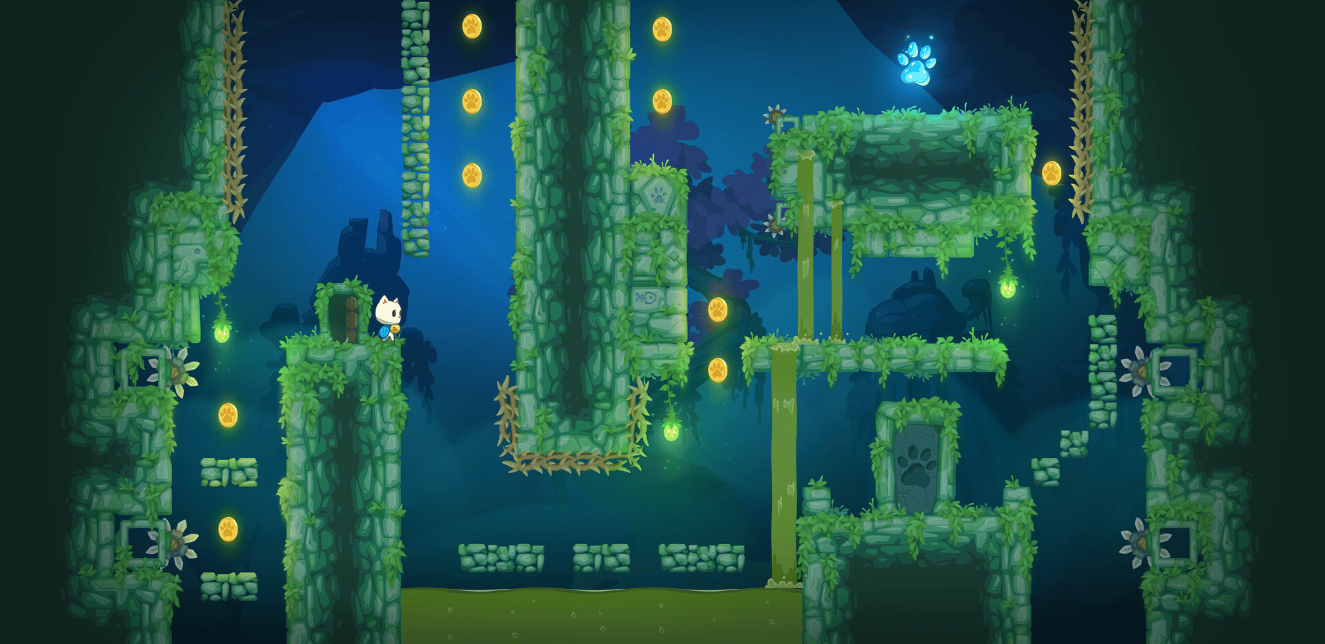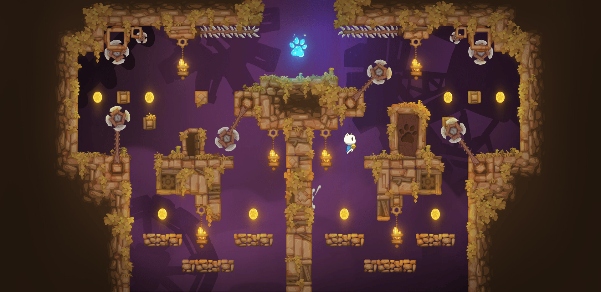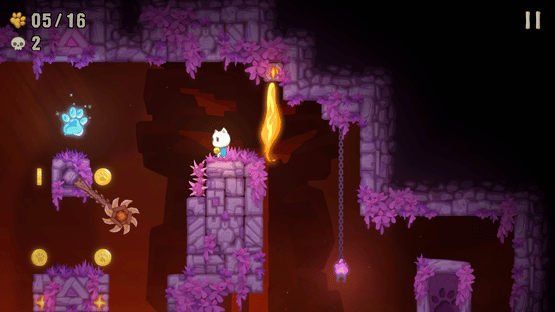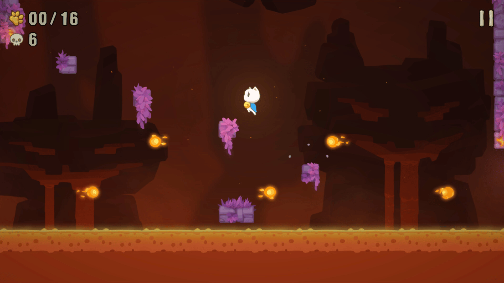 "Jumping Cat" is a simple and straightforward platform jumping game. In order to revive the lost kingdom, our cat hero puts on his cape and overcomes many obstacles to collect Gold Coins and Paw Gems in dungeons full of traps!