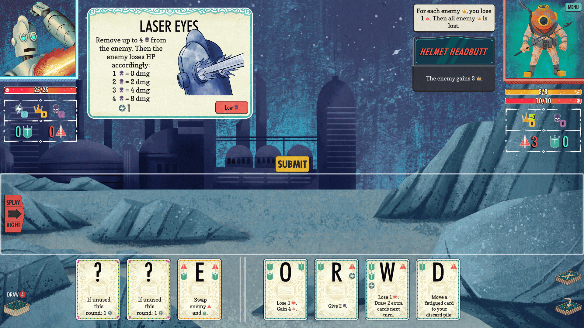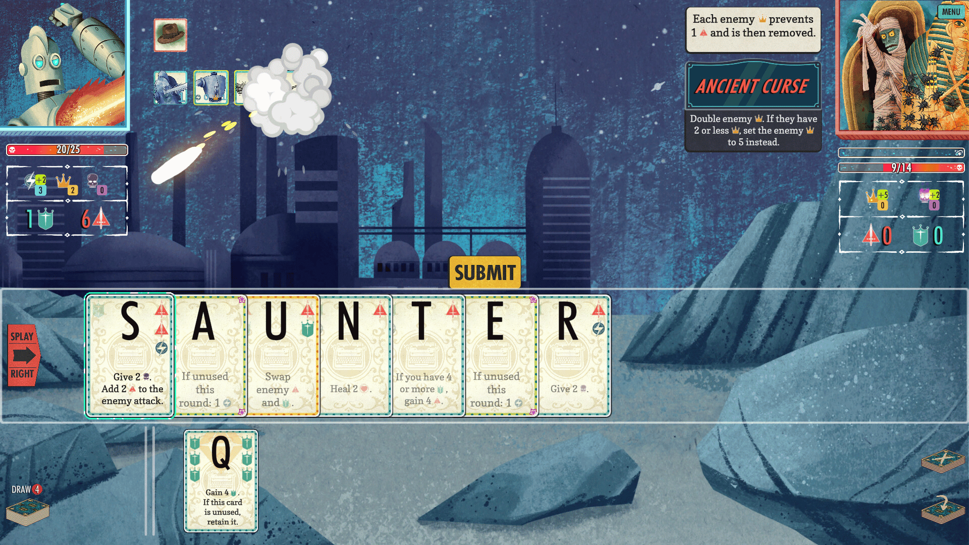 Combine word wizardry and superior strategy in this roguelike deckbuilding adventure. Craft a unique deck of letter cards throughout each journey, collect rewards from your victories, and each adventure unlocks new cards.