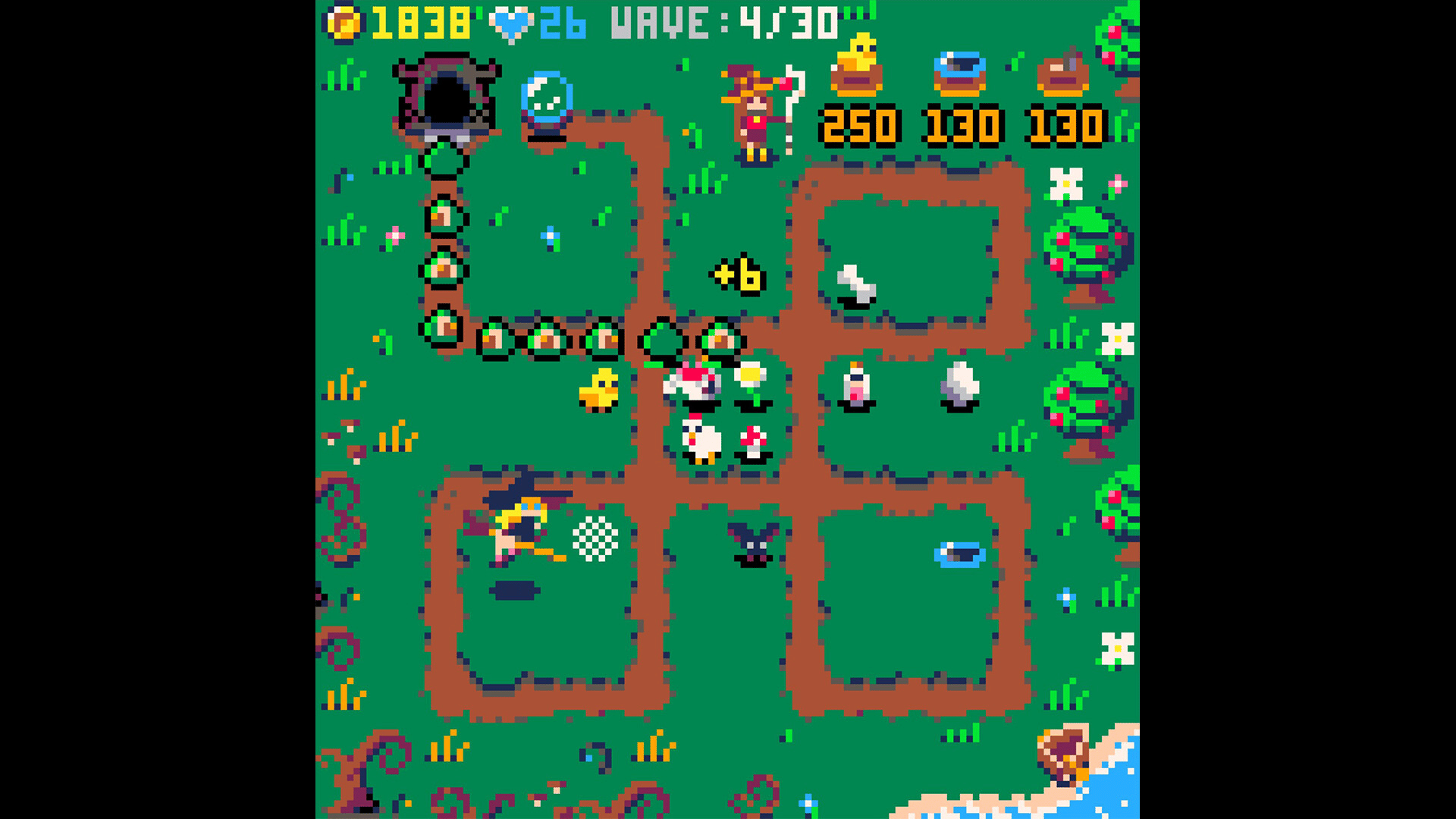 Open the ancient portal and defend the crystal from waves of mysterious enemies! As an apprentice witch your magic is quite random so you have to come up with some strategy to make the best out of your luck.
