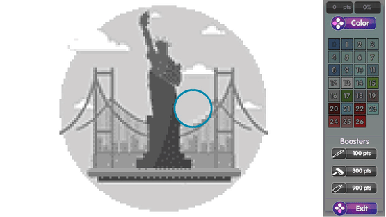 Unleash your inner artist and create beautiful works of art. Choose a blank canvas from one of the 8 categories and paint by number. Fill your art gallery with over 100 paintings of different shapes and sizes.