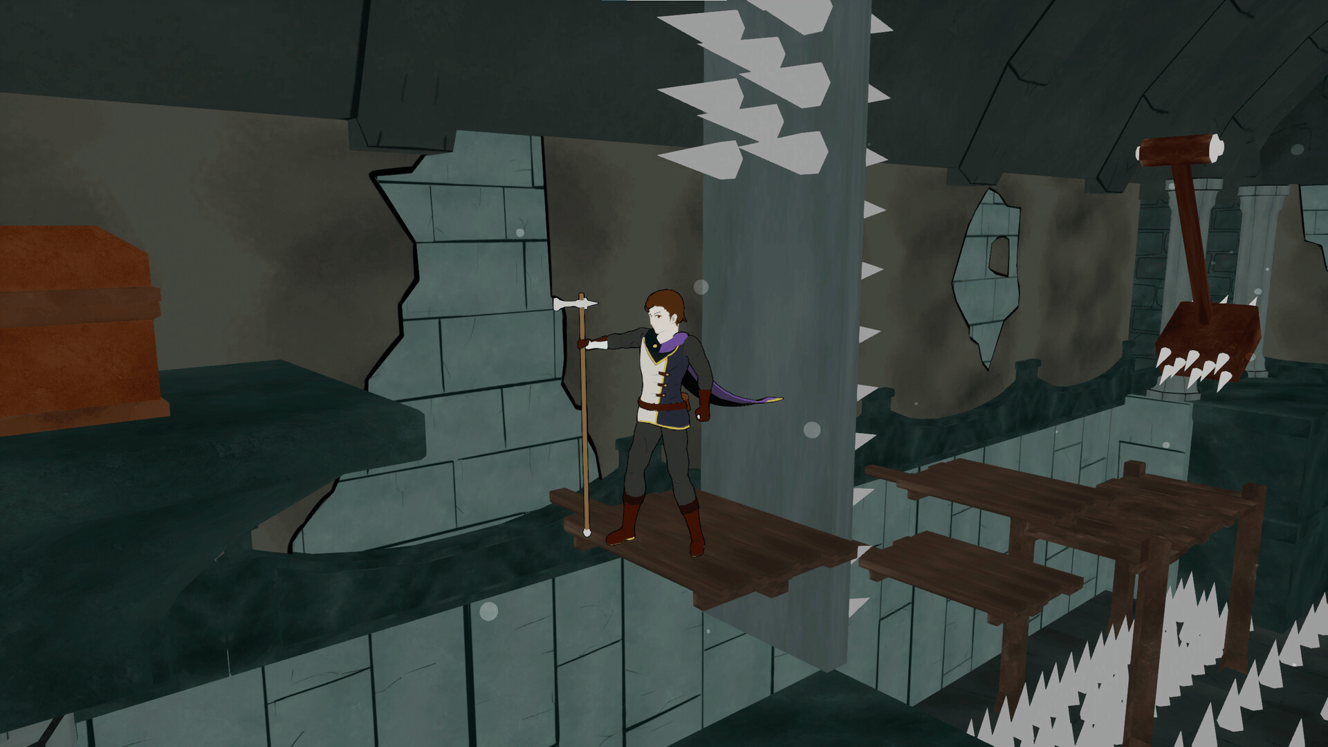 An Anime inspired 3D adventure game were you ascend a castle with puzzling and platforming, leading to Boss fights at the end of each floor. You are to save the princess with 4 separate characters, 8* different endings, and a maid that supports you along the way.