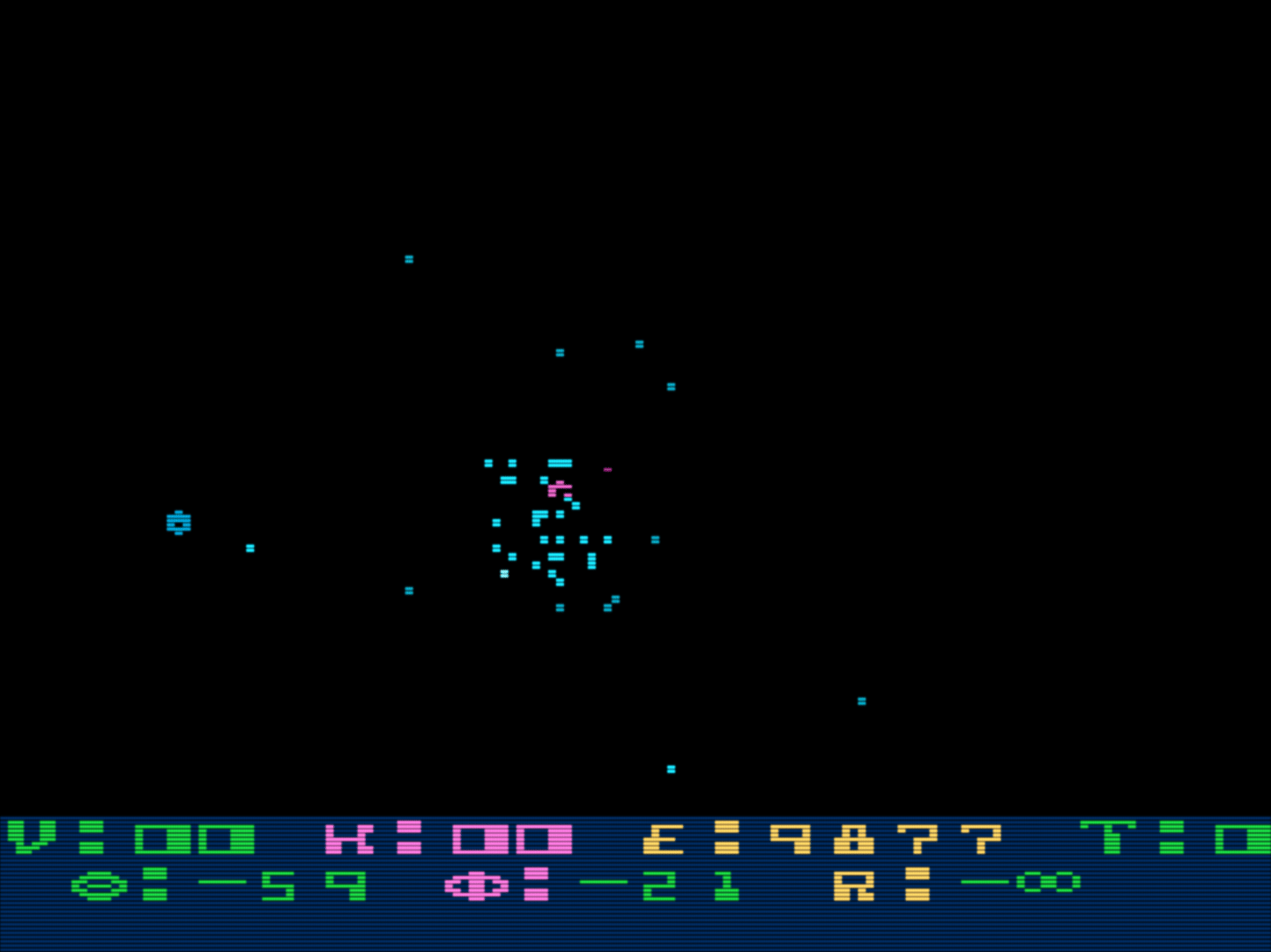 Star Raiders is a first-person space combat simulator for the Atari 8-bit family of computers. It was written by Doug Neubauer, an Atari employee, and released as a cartridge by Atari in 1979. The game is considered the platform's killer app. It was later ported to the Atari 2600, Atari 5200, and Atari ST. The game simulates 3D space combat between the player's ship and an invading fleet of alien "Zylon" vessels. Star Raiders was distinctive for its graphics, which, in addition to various map and long range scan views, provided forward and aft first-person views, with movement conveyed by a streaming 3D starfield as the player engaged enemy spacecraft. While there had already been target-shooting games using the first person perspective (including 1978's Cosmic Conflict), Star Raiders had considerably higher quality visuals and more complex gameplay. It inspired imitators throughout the 1980s as well as later-generation space combat simulation games including Elite, Wing Commander, and Star Wars: X-Wing. In 2007, Star Raiders was included in a list of the 10 most important video games of all time, as compiled by Stanford University's History of Science and Technology Collections.