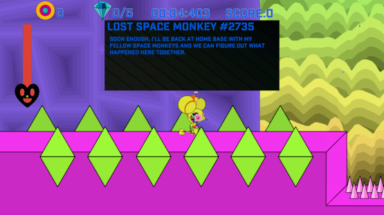 A classic 2D, metroidvania where you explore the color dimension of the space monkeys. Gather your lost equipment, gain legendary abilities, unlock achievements, and even more secrets in this snappy retro throwback