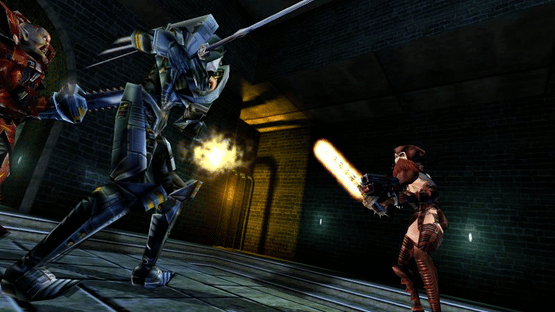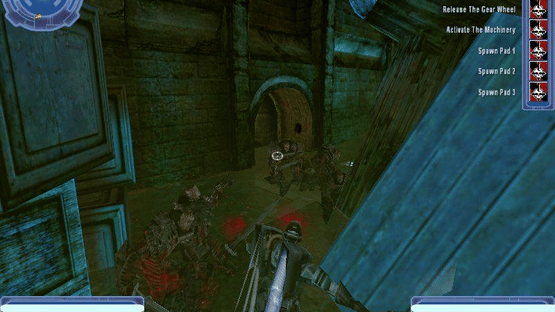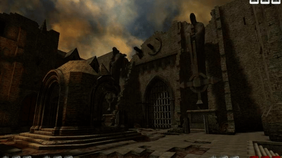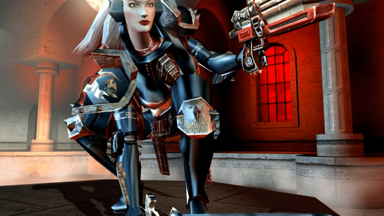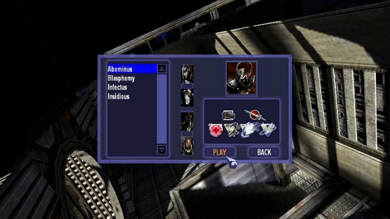 The forces of good and evil collide in this third-person gothic science fiction shooter. The single-player mode lets players select one of 16 characters and lead a team of holy avengers against the forces of Neo-Satan. Characters are skill rated and armed with guns, swords, and spells. Although the teammates and opponents are bots, each of the 18 levels is an objective based mission typical of multiplayer FPS games (rescue hostages, deliver packages, etc...). The player and bots re-spawn an unlimited number of times until the level objective is completed or failed. The forces of evil usually have a numerical advantage including a team of character type bots (comparable to the player's team) and an additional horde of mindless minions.