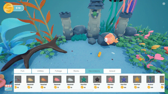 Finterior Decorator is a game about filling up an aquarium with all the wonderful decorations and plants that keeps your fishy friends swimming and smiling! Be sure to keep these lil guys happy and healthy as you add to the aquarium.