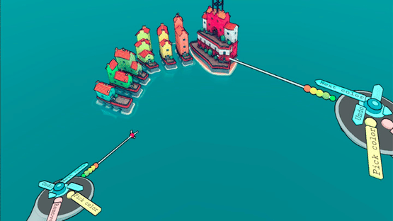 Build quaint island towns with curvy streets, small hamlets, soaring cathedrals, canal networks, or sky cities on stilts. Build the town your dreams, block by block. No goal. No real gameplay. Just plenty of building and plenty of beauty. That's it. Townscaper is an experimental passion project. More of a toy than a game. Pick colors from the palette, plop down colored blocks of houses on the irregular grid, and watch Townscaper's underlying algorithm automatically turn those blocks into cute little houses, arches, stairways, bridges, and lush backyards, depending on their configuration.