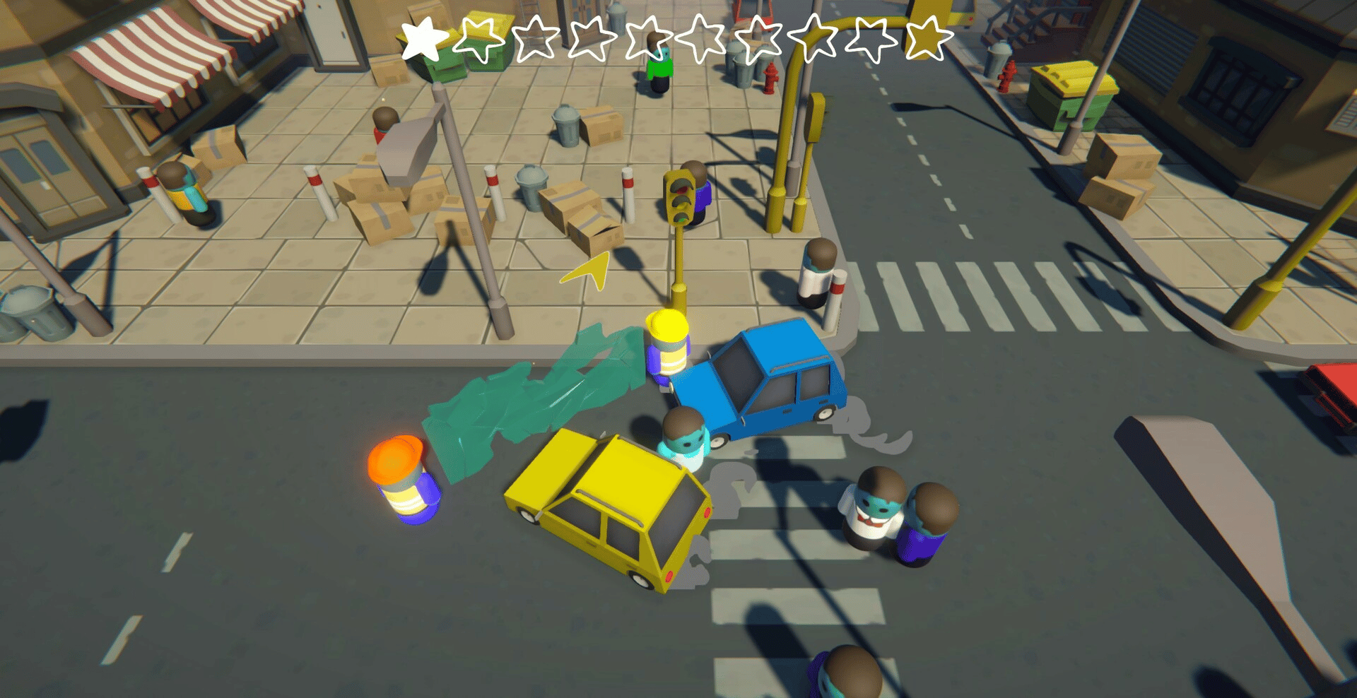 Together with Steve, your coworker, deliver glass to the construction site. Try not to damage the city too much.
