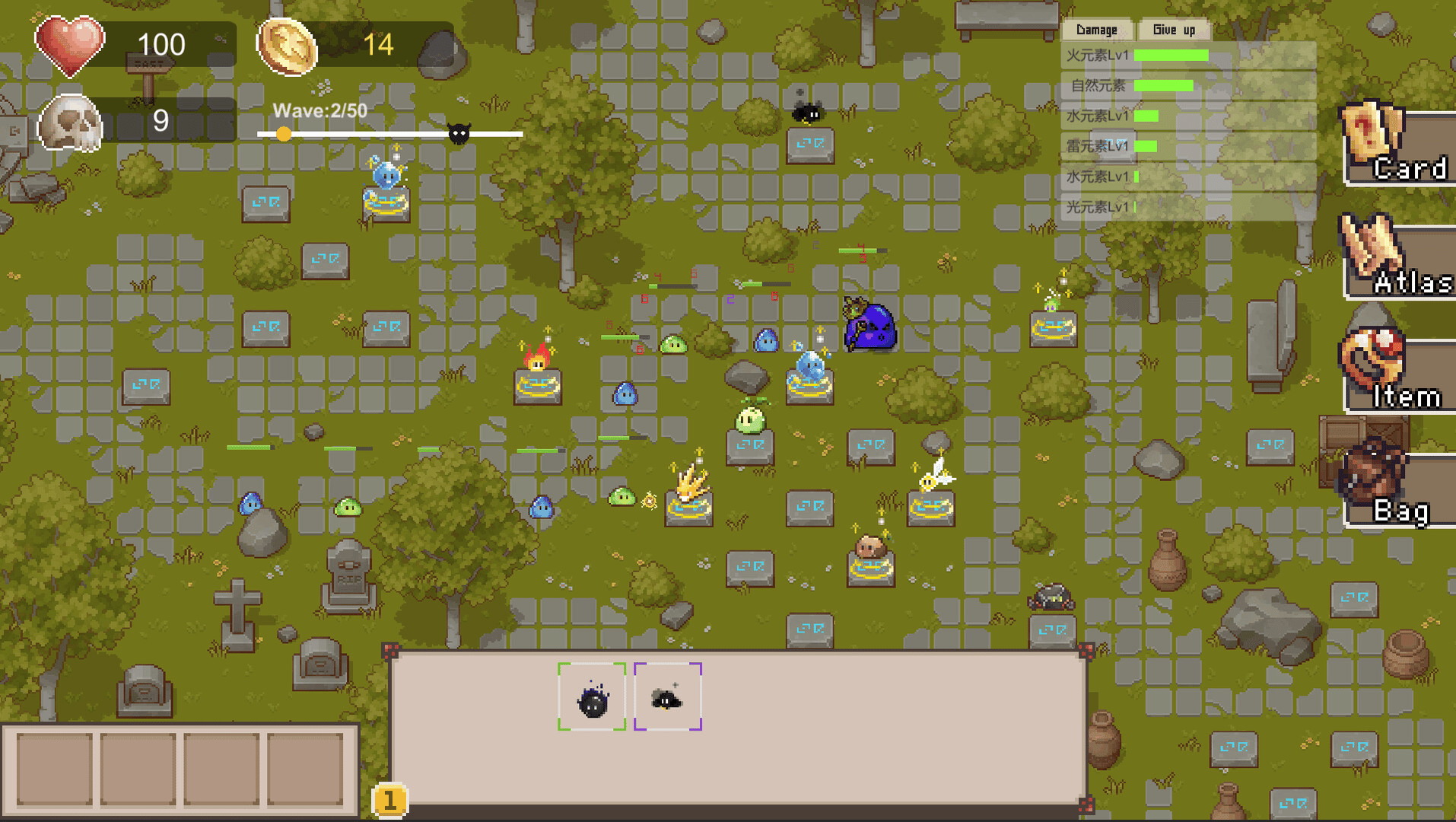 The ancient forest was invaded by evil creatures, Brave summoner, pray for the power of elements, prepare to meet fierce and brutal opponents! Mix different elements to create a unique element creation! Defeat the attacking monster, obtain rare props, and strengthen the power of Elemental!