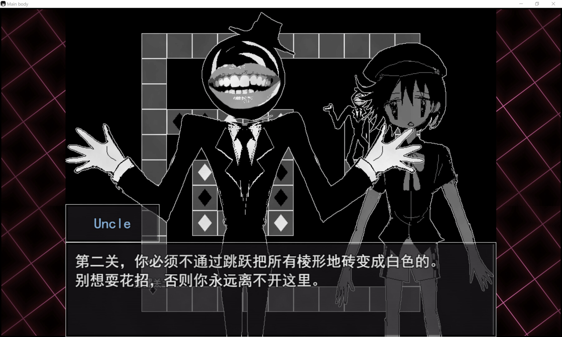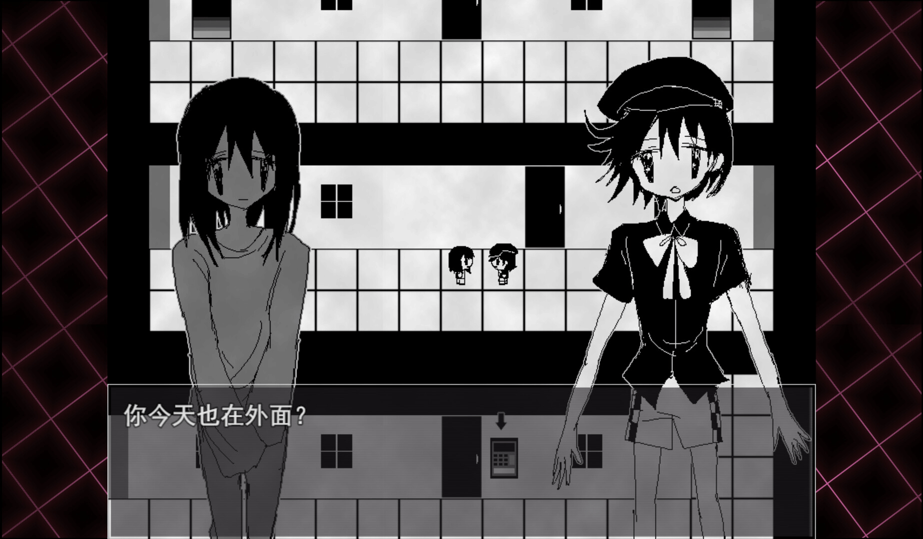 A puzzle-based horror game where the player takes on the role of a building manager who manages a haunted building and its "patients". Through the player's different options will raise or lower the pollution value, thus triggering different endings.