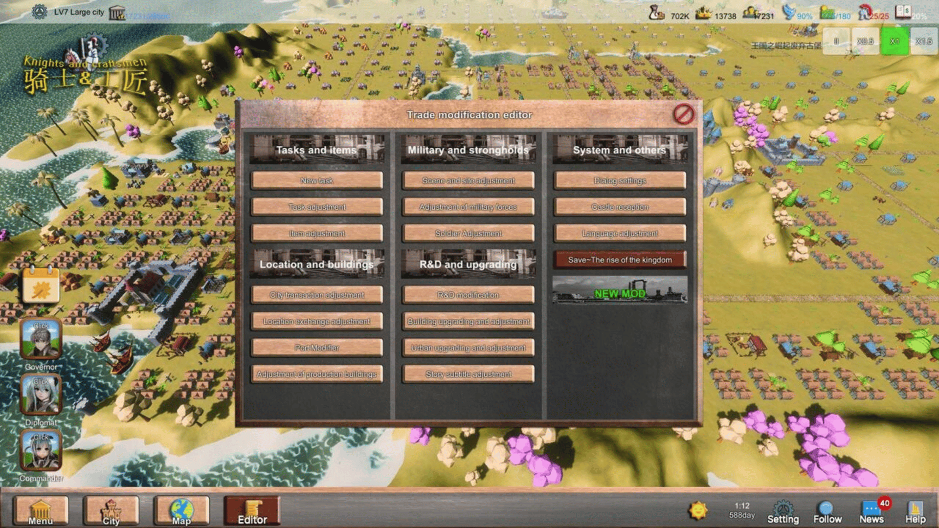 Create your own story in Knights and Craftsmen. The lord can also obtain funds through the trade between the city-state, and gain prestige by completing the task. Through the ocean port, he can open up overseas colonies to obtain more territory and resources. Finally, a great and powerful city-state will be established. You can also be the creator of a story.