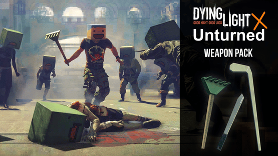 This free DLC created for the Unturned crossover event in Dying Light contains a unique outfit and blueprints for three completely new, almost indestructible “low-poly” weapons modeled after Unturned items (Rake, Machete, and Hockey Stick).