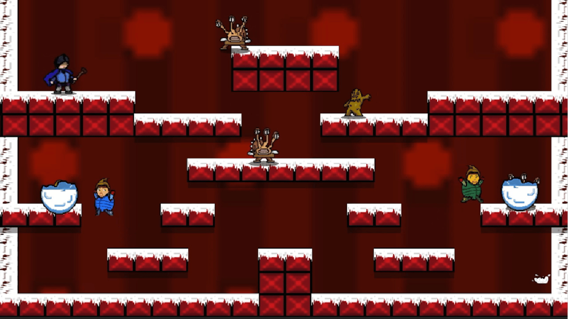 This game provides an easy-to-play and fluent experience to player/players through both "Single-Player" and "Local 2-Player" mods. In order to succeed in levels, you will need to get rid of unique enemies with your snowballs. Snow Madness brings fun and competitiveness together and makes you experience an old-school atari game sensation. Select the appropriate difficulty level and start to have fun!