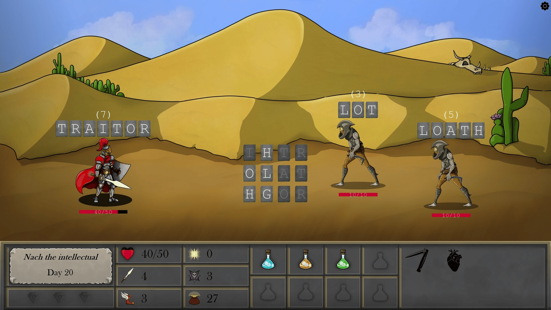 Harness the power of your wits and vocabulary to conquer the rich fantasy world of Wordsmith! A word-game based roguelike with a plethora of enemies, biomes, events, items, and more to make every playthrough unique and compelling.