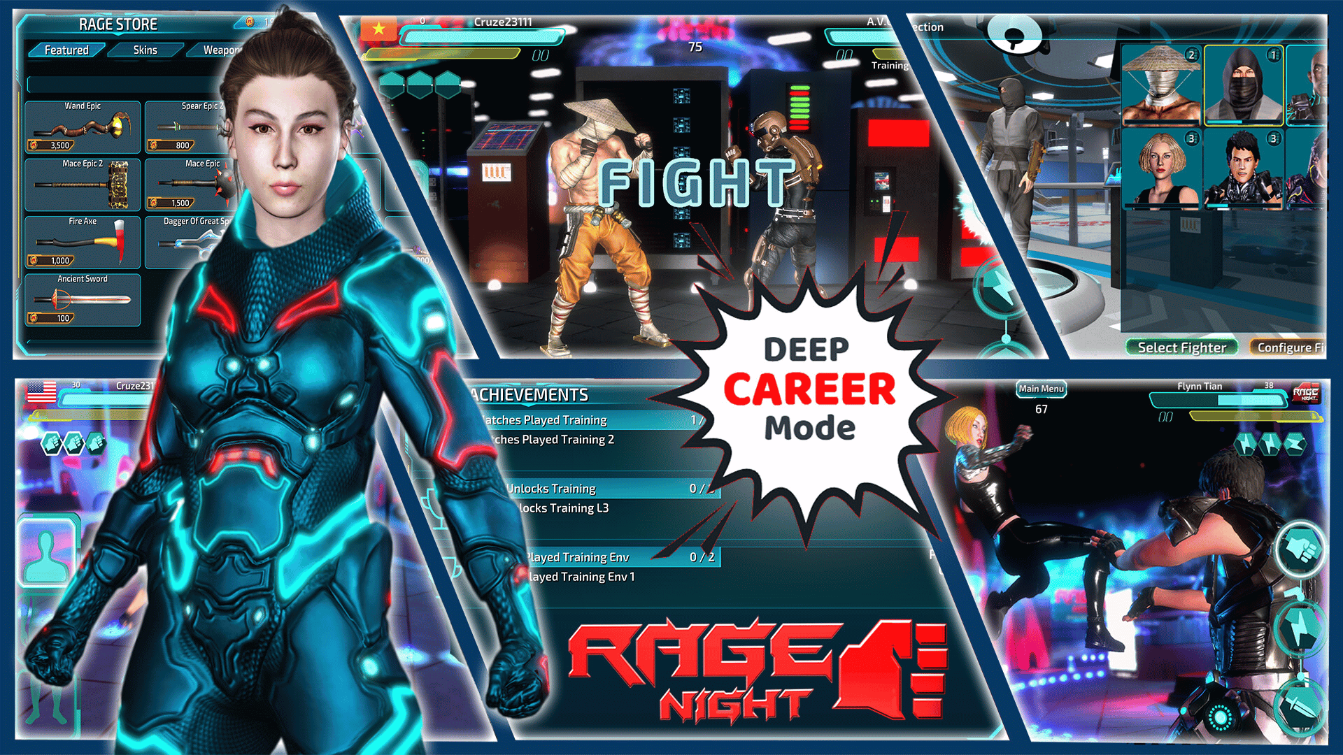 Earth has been chosen to host this season of RAGE NIGHT! Earth's greatest fighters past and future battle it out for the opportunity to be Rage Night Champion! Experience real-time PVP Cinematic Fighting, Simplified-Controls, Free-to-Play. Get ready to Rage!