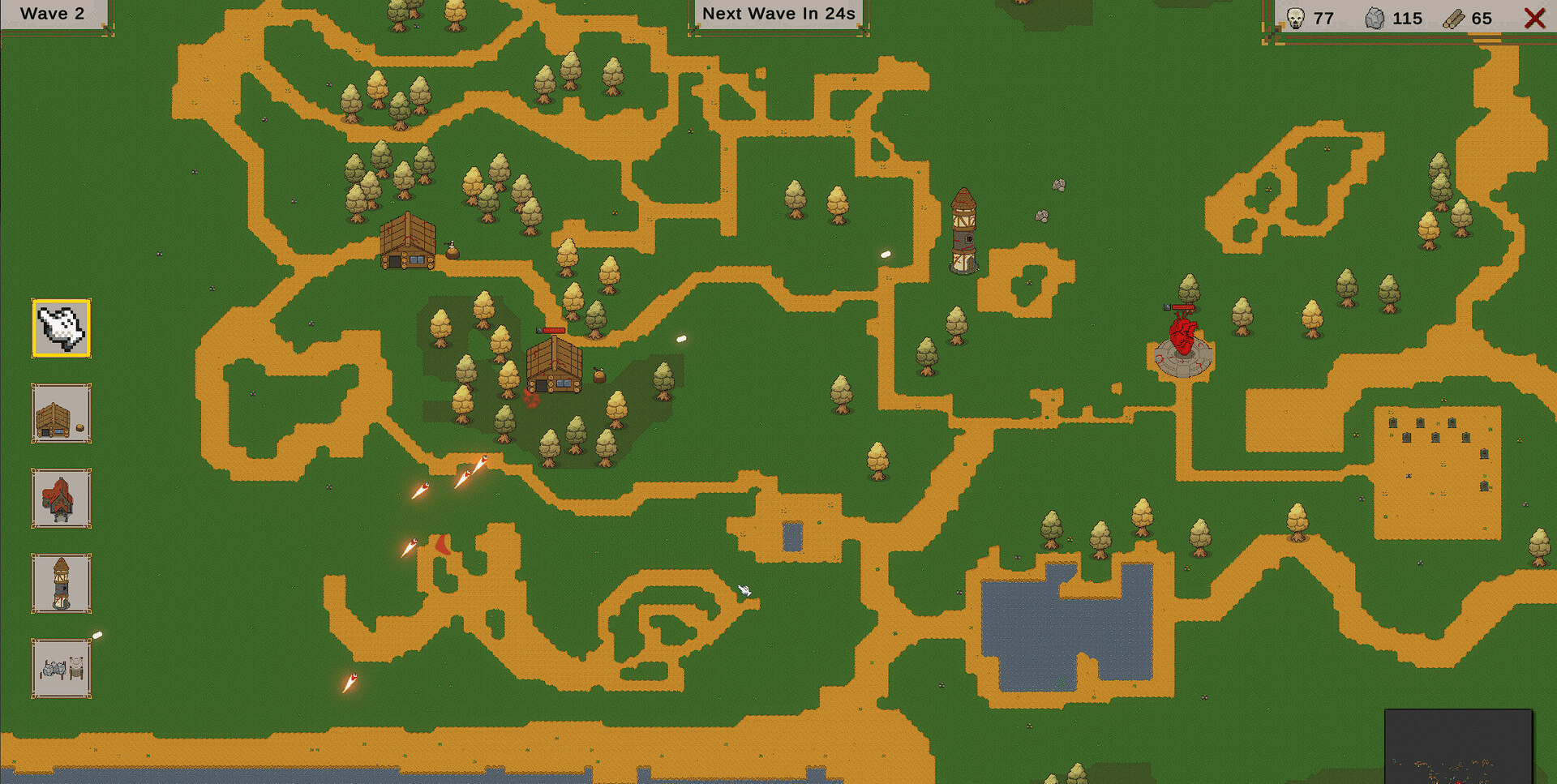Building defender 2D strategy game! Place building and gather resources. Use the resources you collect to then build towers that will defend your heart in the middle of the map. Survive as many levels as you can manage! Good luck!