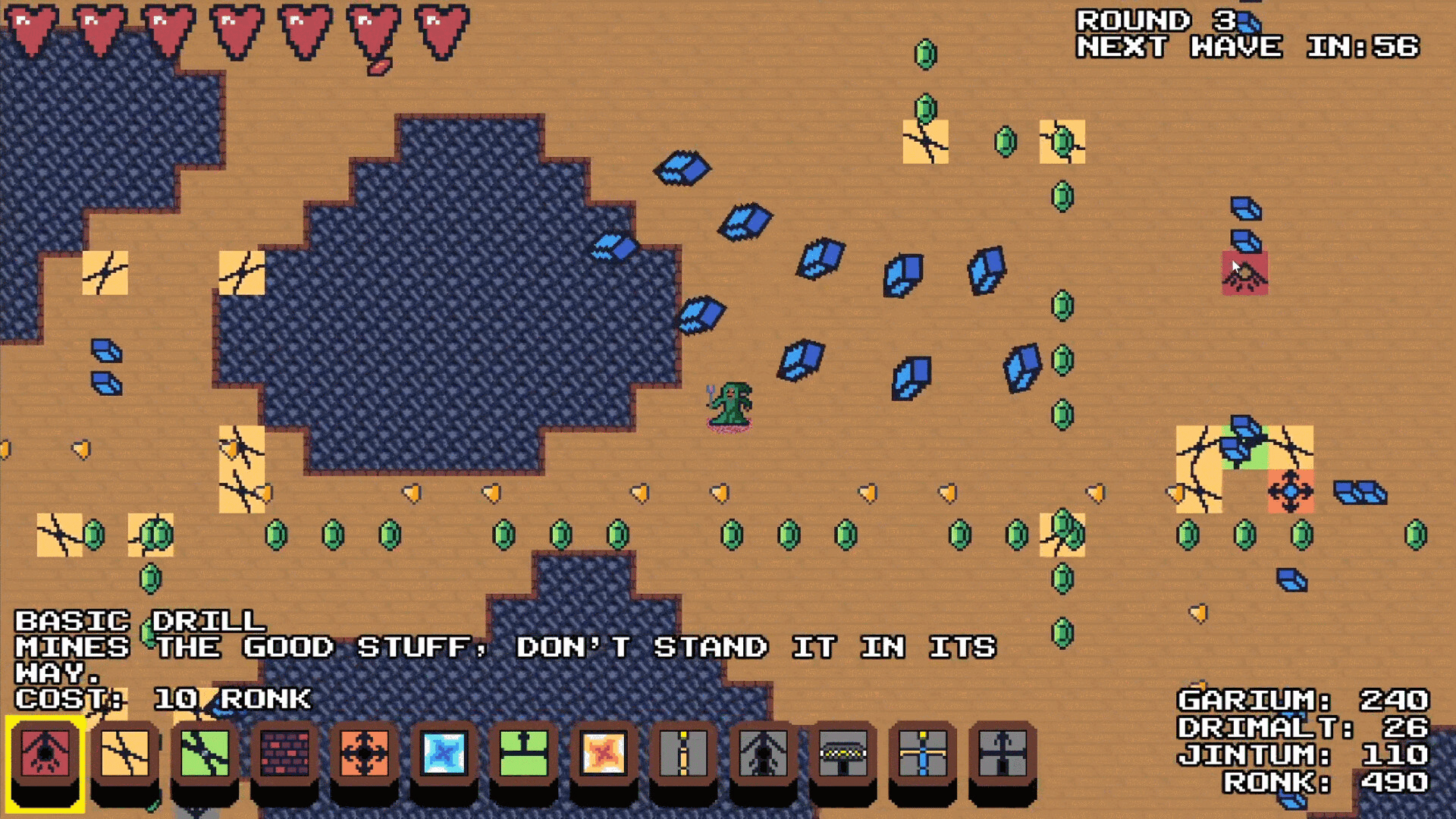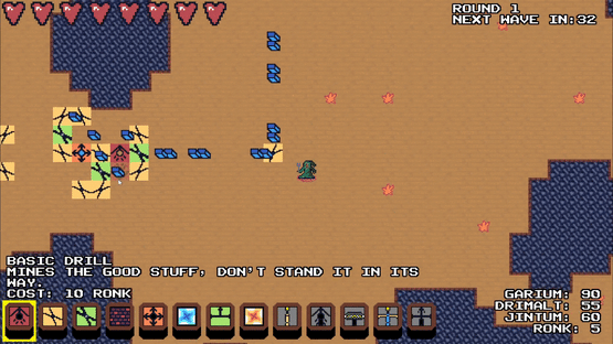 Orestorm Factory is a BulletHell Roguelike where you must build a factory of drills and processors to loot a cave, and dodge your way past enemies and your own deadly machinery along the way.