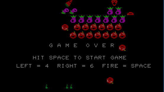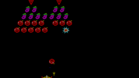 Use your fork shooting ship to fight off hordes of eggplants, carrots and apple, in Vegetable Crash, a Galaxian/Galaga clone
