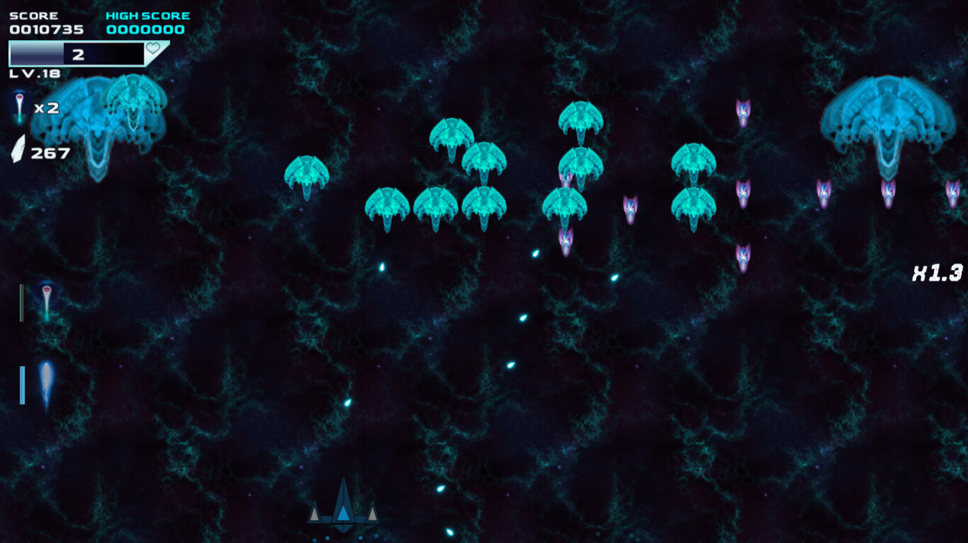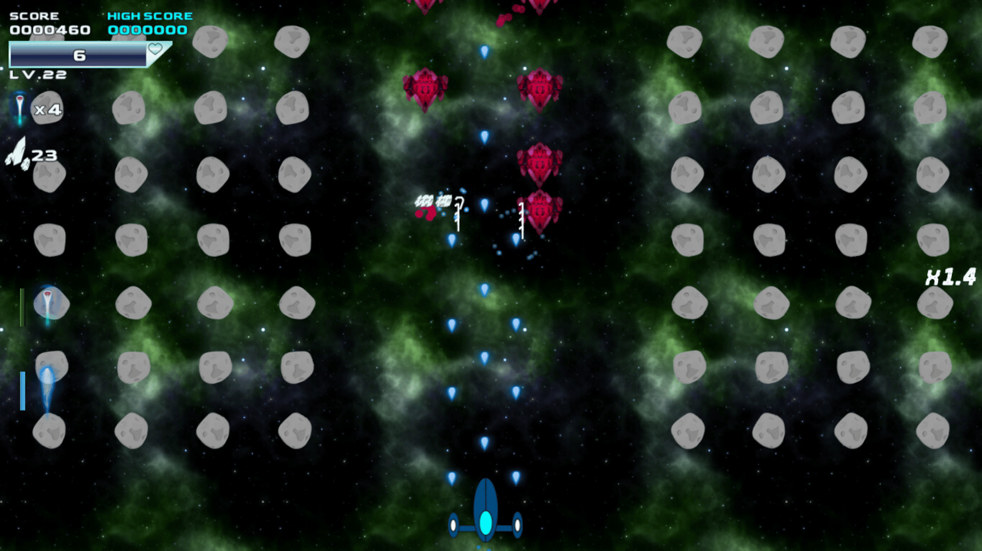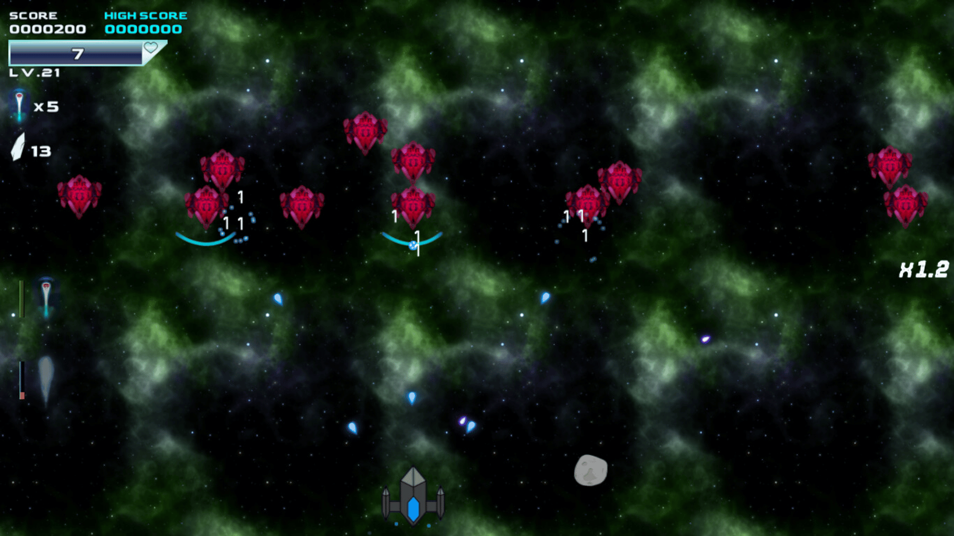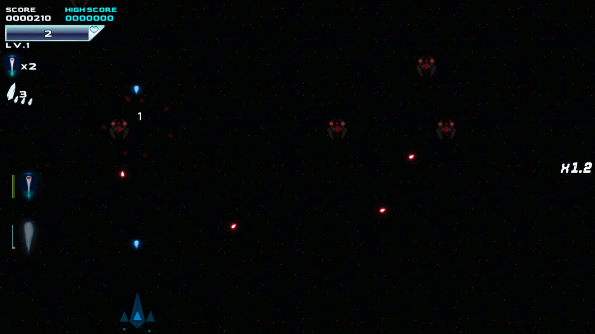 A space shooter game with RPG mechanics. Players will be able to improve their ships to tackle the challenges ahead, as well as buy better ships and customize them.