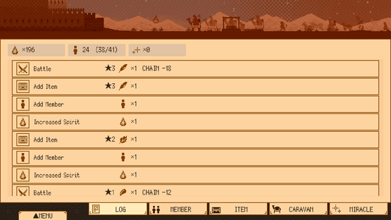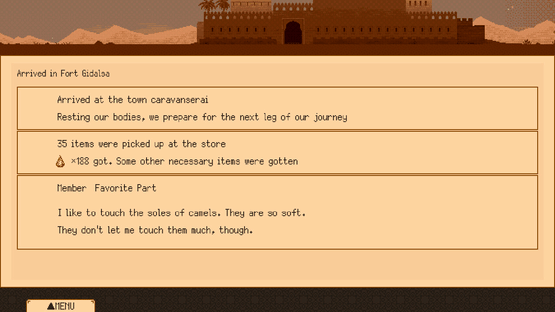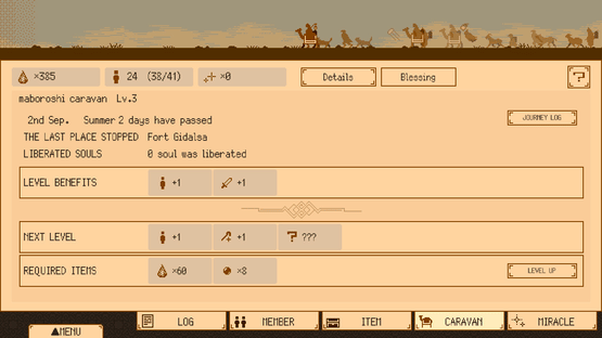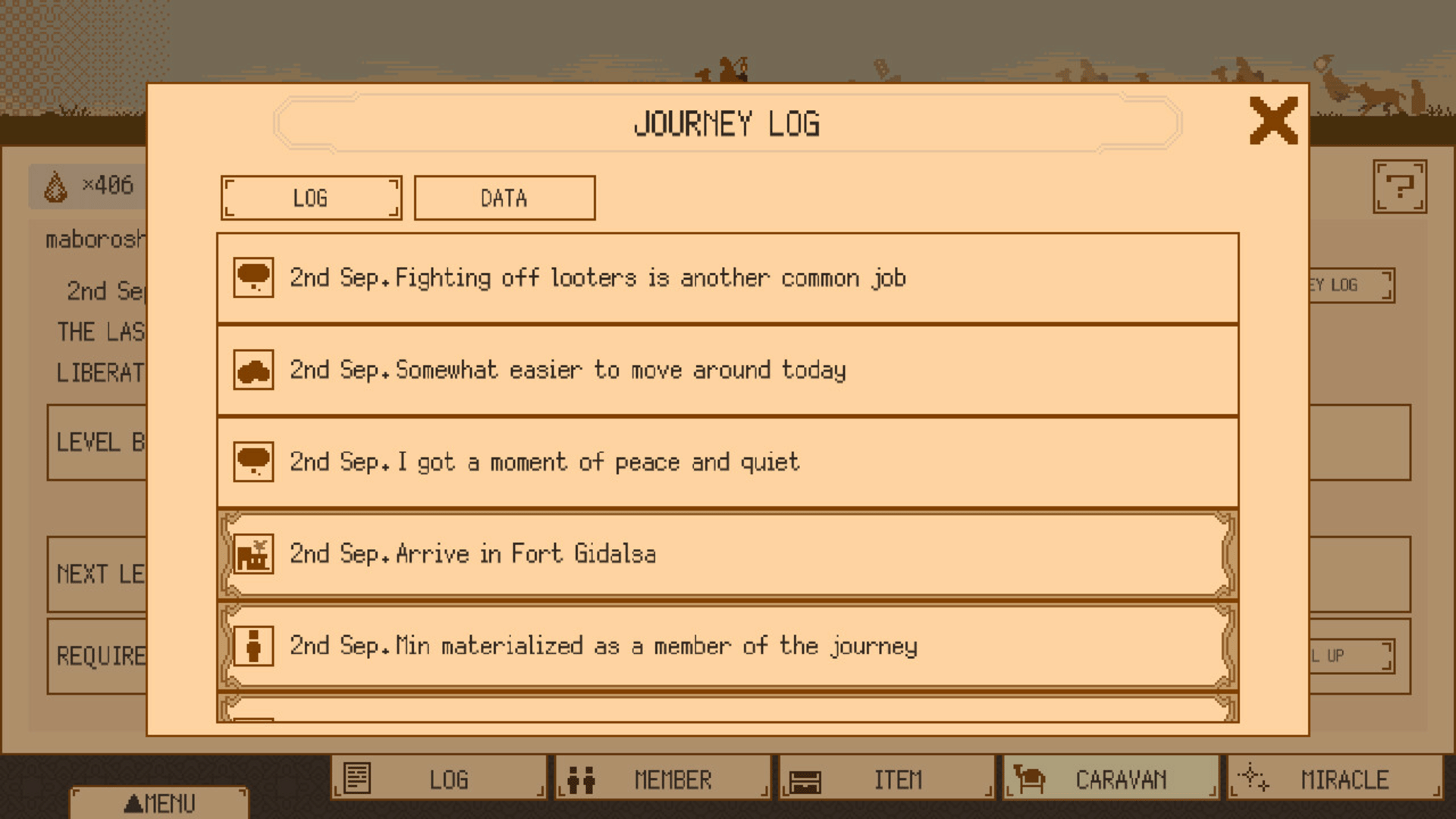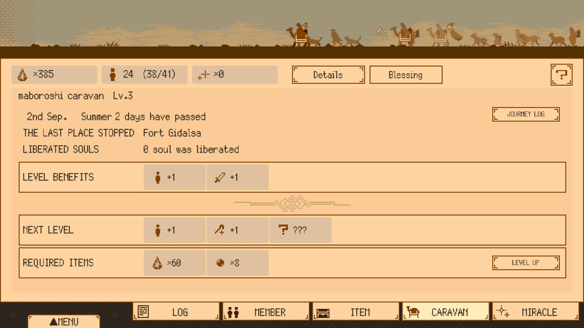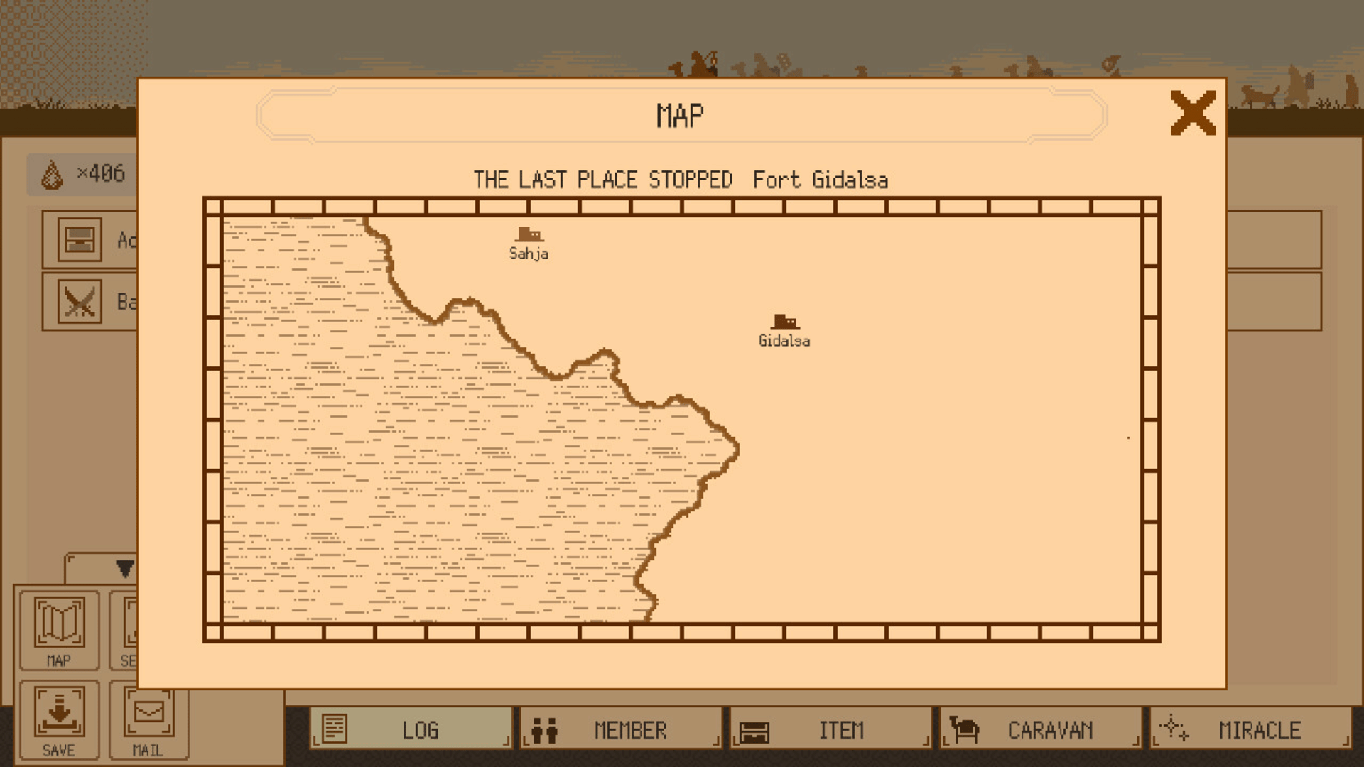 maboroshi caravan is an abandonment and simulation game in which you watch over a caravan traveling through the desert. Many are represented by small, abstract pixel arts. Set out on a journey through a vast desert with diverse expressions with companions. The game is played with mouse and keyboard.