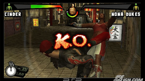 Fight for the win or throw the fight to make some extra cash in this PSP fighting game.