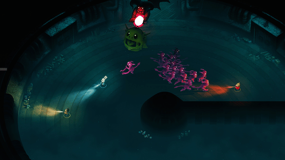 Begone Beast is a spooky top-down action game for 1-4 players. HACK & SLASH & SCREAM through hordes of demons, endlessly changing levels, and ancient terrifying BEASTS. Harness the power of SNACKS, FLASHLIGHTS, and FRIENDSHIP in this scary (but also cute) race for survival!