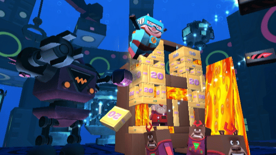 Like the original BOOM BLOX game Bash Party is based around fast-paced gameplay that utilizes players' reflexes, dexterity, and problem-solving skills. During the action players use the Wii Remote to direct objects and forces toward structures made of blocks in order to knock them over. There is also Jenga like gameplay during which players pull blocks, with the goal of toppling as many of them as possible, but without bringing down the whole structure. In doing this players have to deal with the different types of blocks in play. Some of these include: gem blocks, blocks with point values attached, explosive blocks that detonate on contact, vanishing blocks that disappear when struck, wood blocks, and steel blocks. In addition, as the game progresses strategies may change, meaning that players must be flexible in order to succeed.